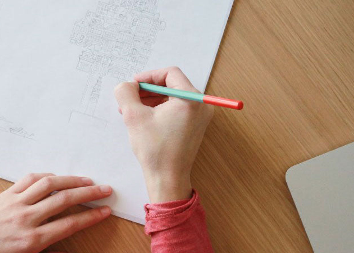 Next, it’s sketch time! For each project, a number of sketches are drafted. This is to understand the best layout for the final city drawing. Afterwards, the process known as ‘vectoring’ begins. This involves compositing the sketches using Adobe Photoshop to create the final layout.