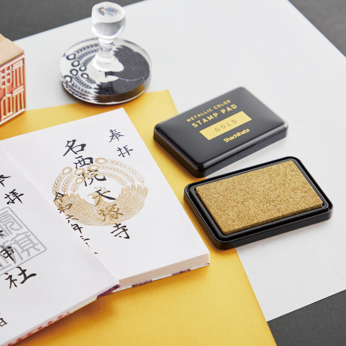 Ink stamp pads come in a variety of colors, formulations, and sizes, from water-based to pigment-based inks, each offering different drying times and durability. At Bookbinders Design, we offer a large collection of stamp ink pads, inks and inky pens from renowned Japanese stationery brands like Shachihata and MU Lifestyle.