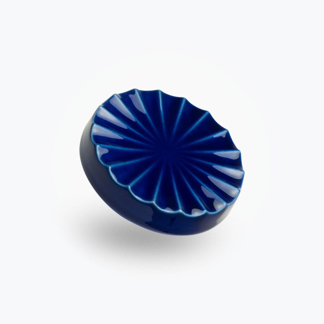 Introducing the AJOTO Imari Pen Rest – a fusion of Japanese craftsmanship and British design. Inspired by the chrysanthemum flower, revered in Japanese culture, the Indigo coloured Crown Rest boasts grooves reminiscent of petals, cradling pens in various orientations. Meticulously handcrafted at the Kanemon Kiln in Imari, Saga Prefecture, this piece is not only a pen rest but also doubles as an elegant paperweight. The solid weight of each Crown Rest, coupled with the unique Nabeshima-Sometshuke colours, reflects traditional artistry. Embrace the blend of heritage and contemporary functionality with this limited edition Imari collection – where each imperfection tells a story.