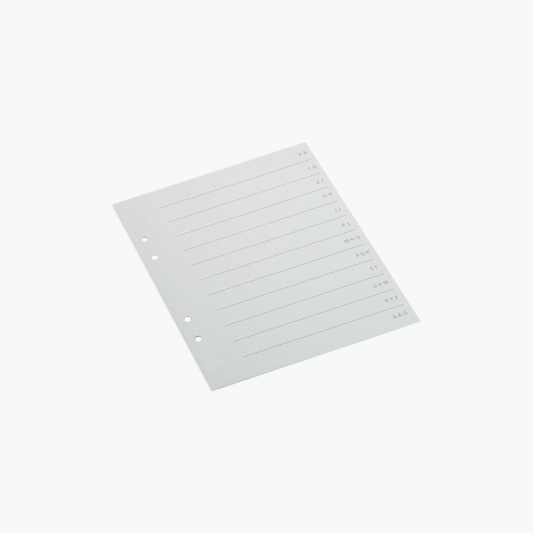Index tabs are perfect for neatly labelling documents and folders to make the information easily accessible. This set features 12 light grey tabs, that are lined with letters of the alphabet down the right hand side.