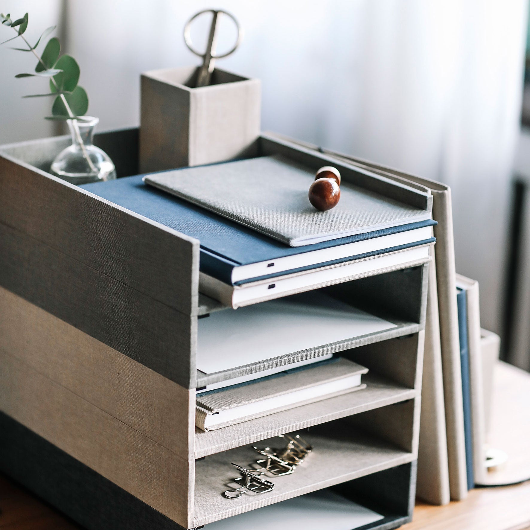 This dusty green, cloth covered Bookbinders Design letter tray adds an elegant touch to any home or office. The trays are stackable and perfectly match other Bookbinders Design products including the desk range, notebooks, folders, binders and albums.