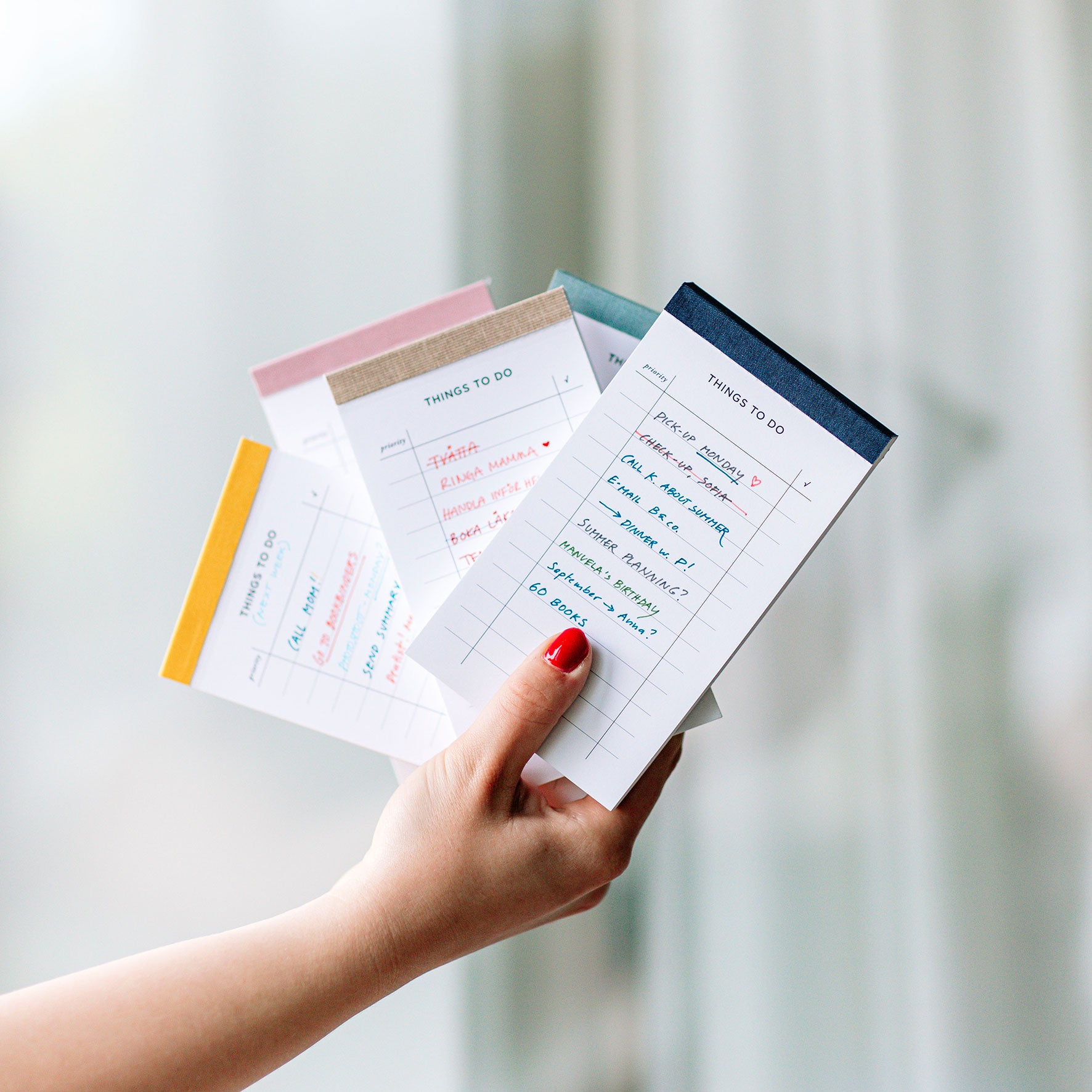 The sun yellow Bookbinders Design to-do list planner is the perfect tool for staying organised. It comes with 64 sheets of acid-free and age-resistant white Swedish 170gsm paper and features three columns including task, priority and done. It is perforated at the spine for easy tear off, while the Swiss binding at the top is covered with bookbinding cloth to add a touch of style.