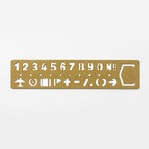 The Traveler's Company solid brass template features a clip that serves as a bookmark, as well as the outline of numbers and shapes that can be used as a stencil. Initially the template is gold in colour, but over time the colour patinas to transform into an antique finish. Like all Traveler's brass accessories, the template is made to last forever and fits inside the Traveler's Company brass pencil case.