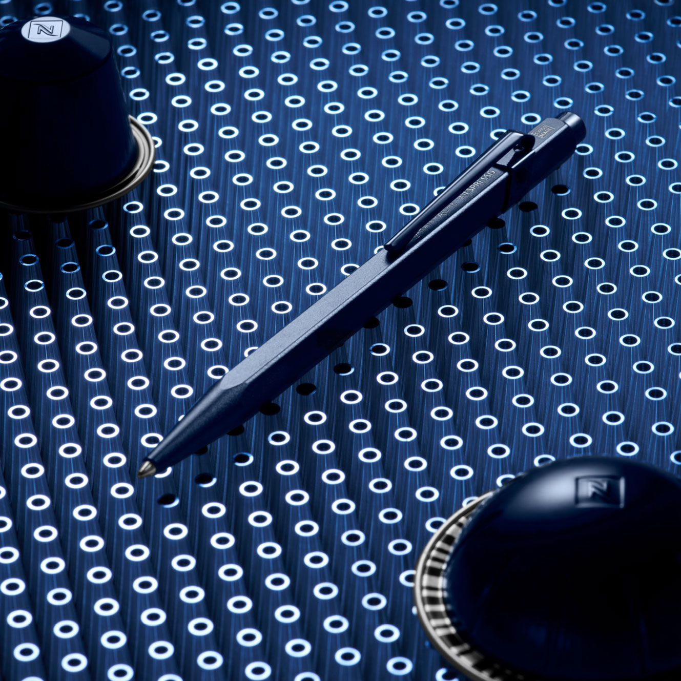 Introducing the Nespresso x Caran d'Ache 849 Ballpoint Pen, a stylish collaboration that combines sustainability and elegance. Crafted from recycled Nespresso capsules, this pen features a sleek, lightweight design with a hexagonal body for optimal comfort. The metallic finish echoes Nespresso's signature colors, while the smooth, reliable writing performance ensures a premium experience. It is 100% Swiss made and comes fitted with the Caran d'Ache medium blue Goliath ink cartridge, which will last for 8000m of wiring.