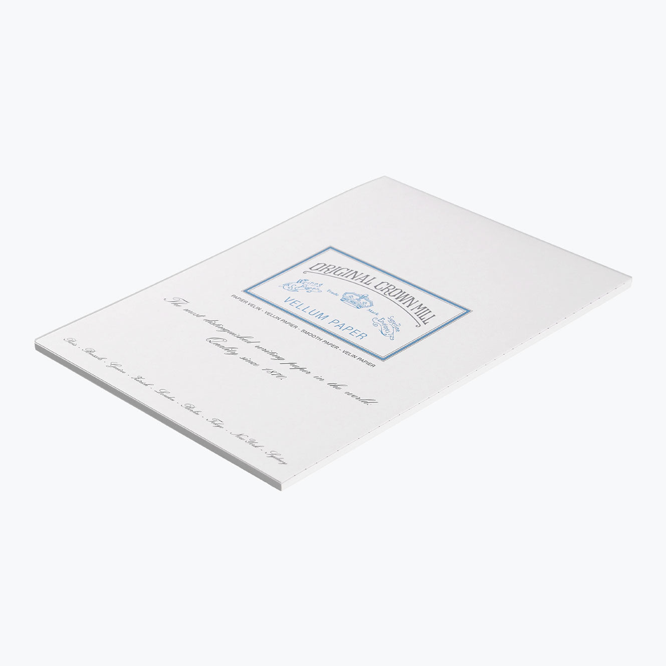 Made in Belgium, the A4 Crown Mill writing pad has 50 sheets of white watermarked Vellum paper that is ideal for personalised stationery, letter writing and invitations.