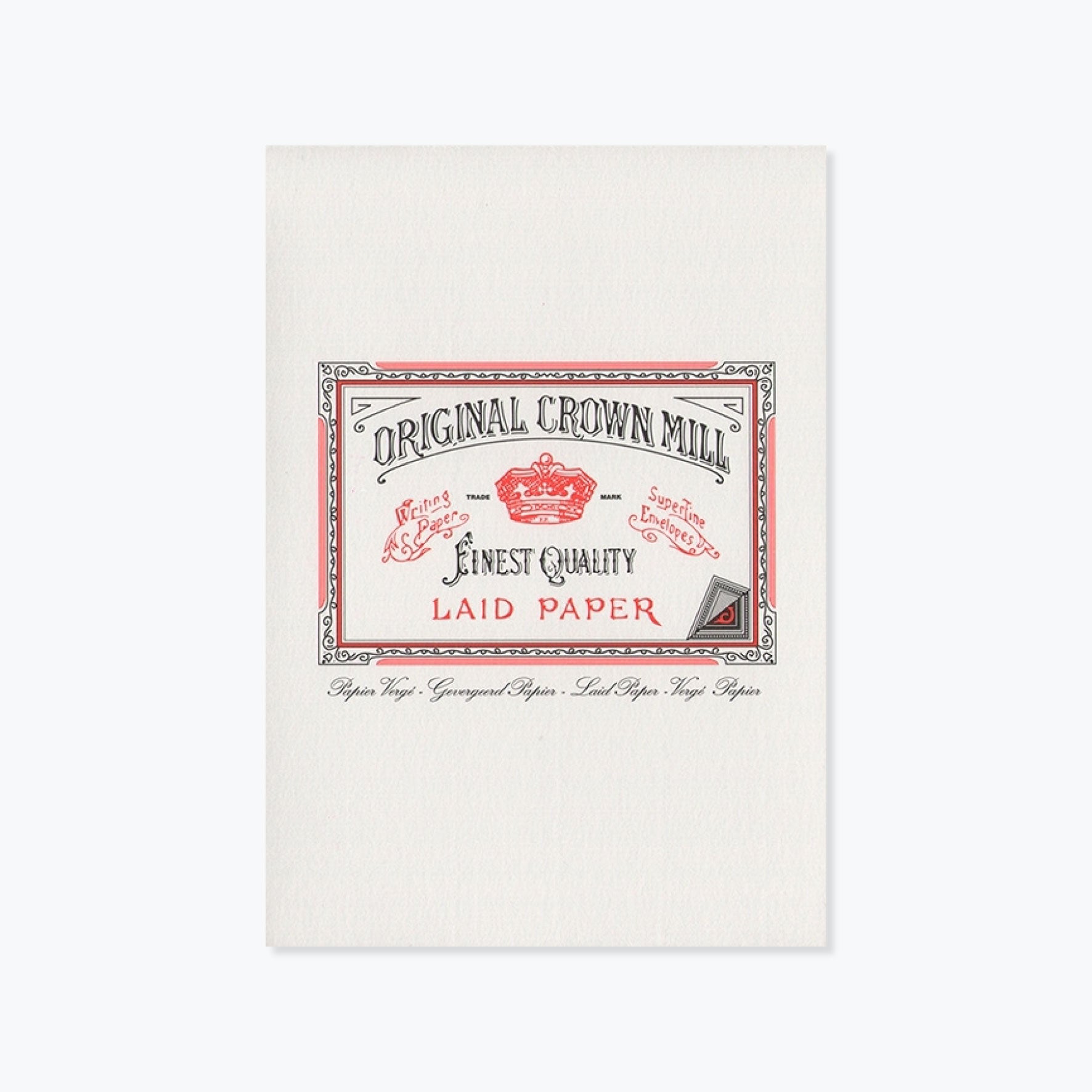 Made in Belgium, the A5 Crown Mill writing pad has 50 sheets of white, laid paper that is ideal for personalised stationery, letter writing and invitations. Lightly marked with long, thin parallel lines that are imparted by the manufacturing process, laid paper is the gold standard in the world of correspondence paper.