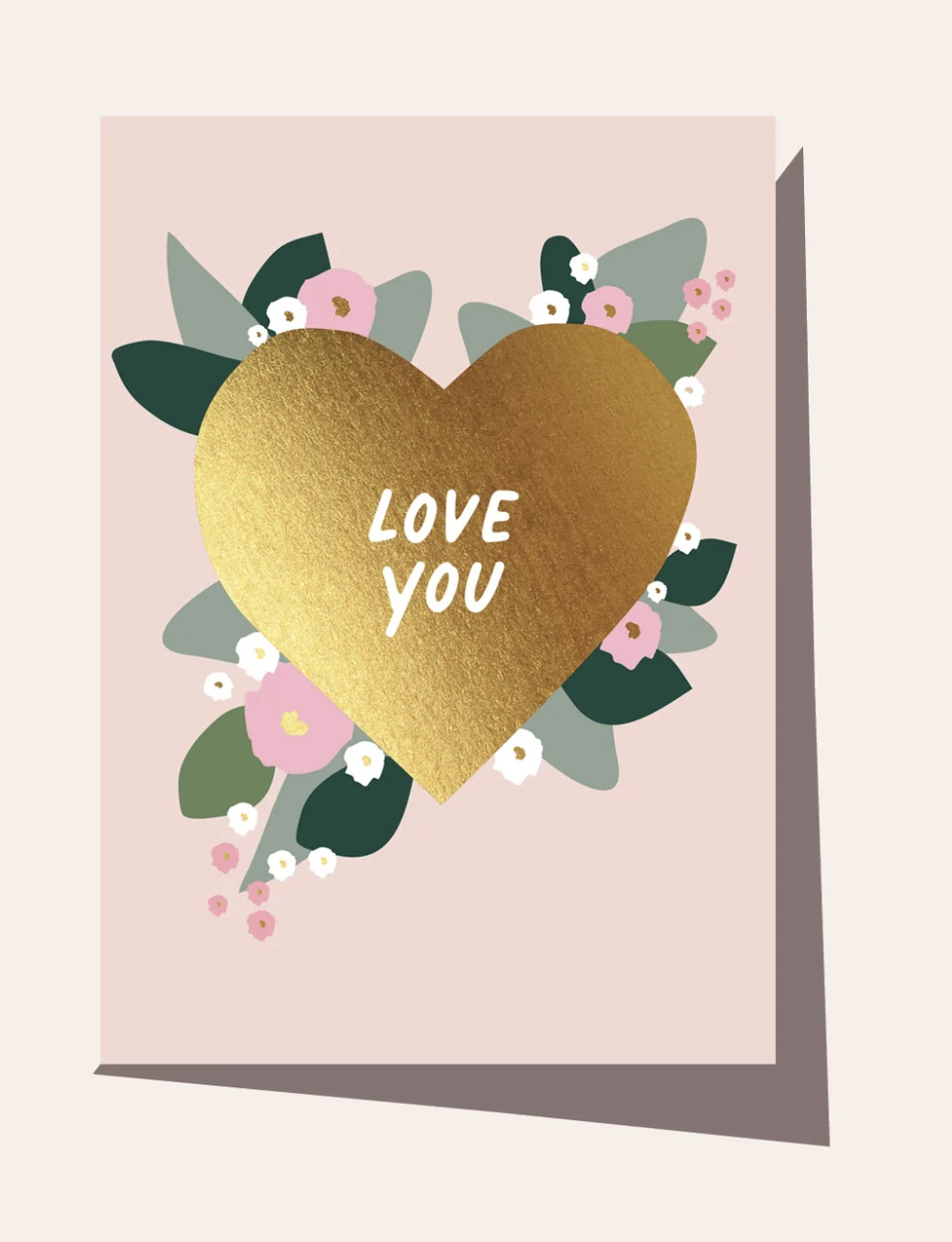 Say “I love you” with this floral card featuring a gold foil heart and elegant design.