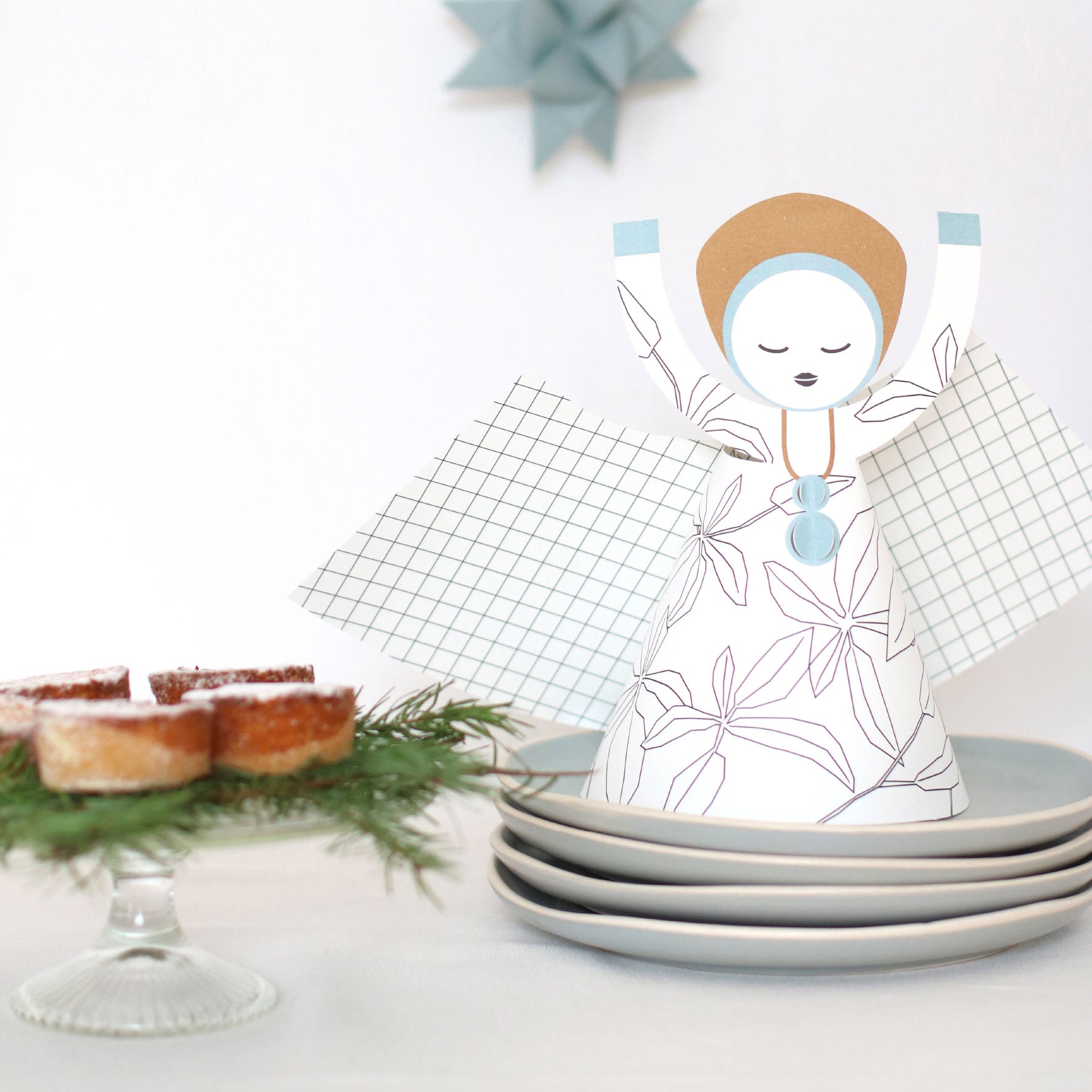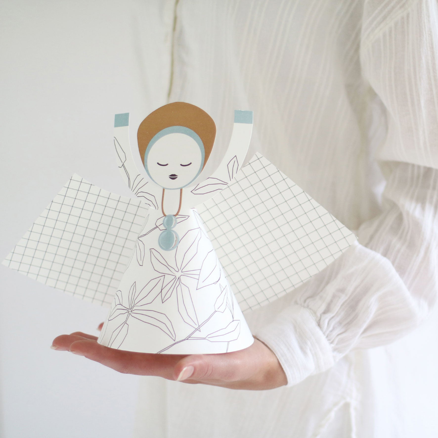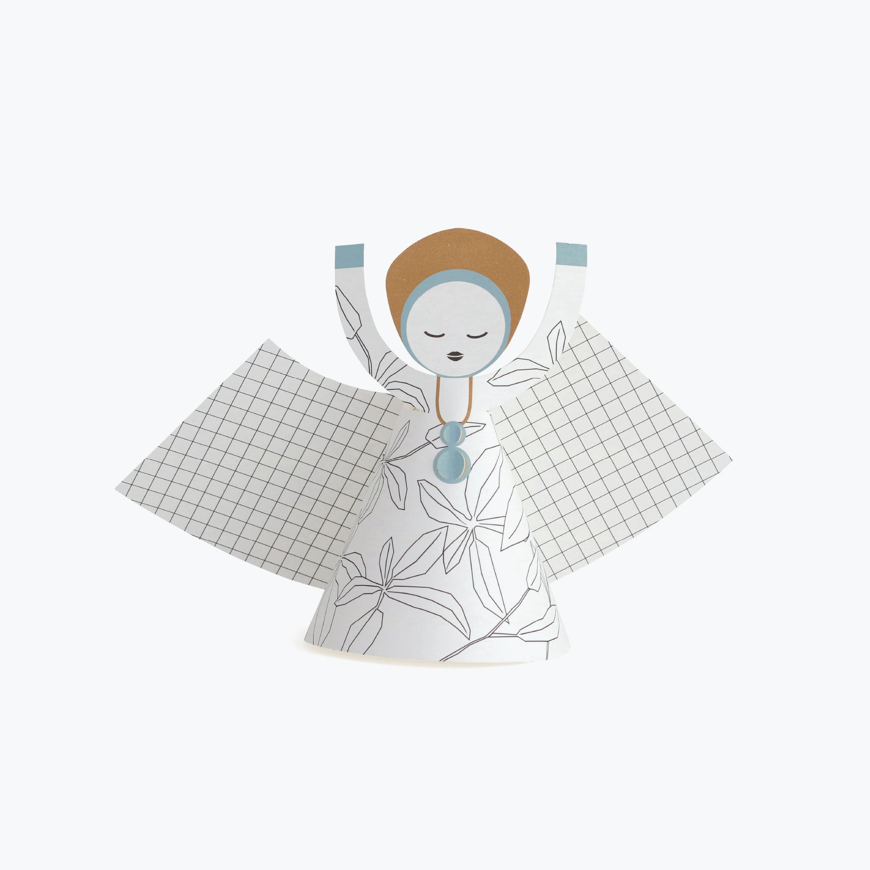 The Jurianne Matter Leaves angel is a large, paper Christmas angels. The skirt features a lined leaf print with a matching design on the wings. The pack includes a punched-out A3-sized card that is easy to fold, making it perfect for adults and children.