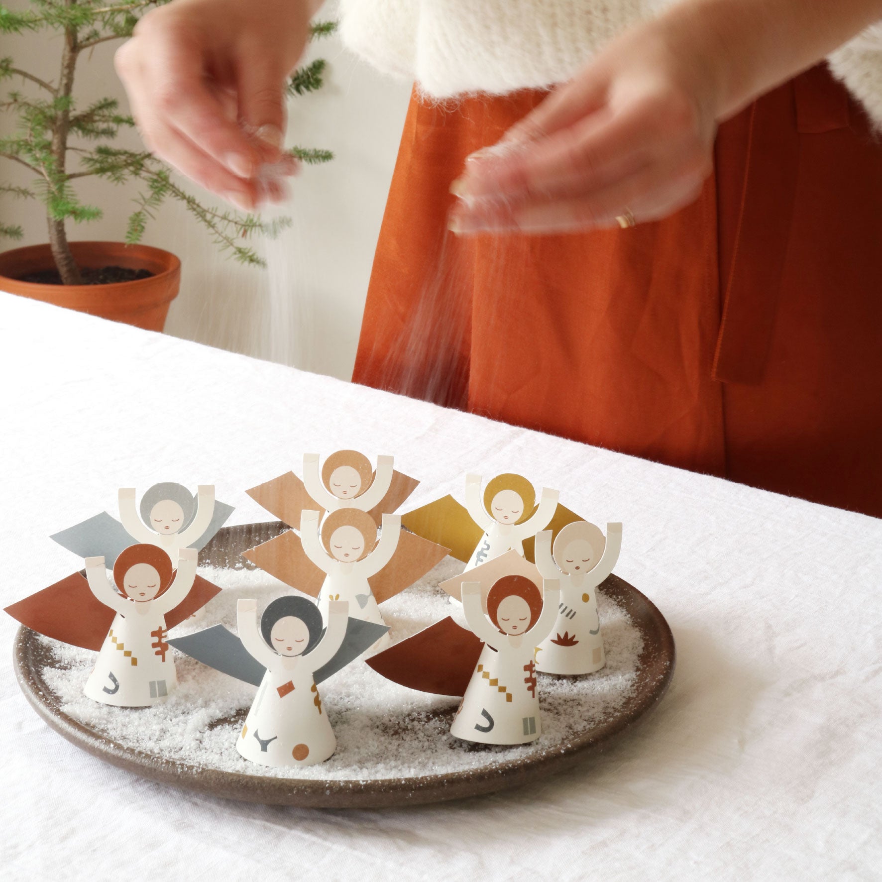 The Jurianne Matter Fridur angels are small, paper Christmas angels. Their skirts feature an abstract design pattern, while each angel has different coloured wings. The pack includes six punched-out A6-sized cards (one for each angel) that are easy to fold, making them perfect for adults and children.