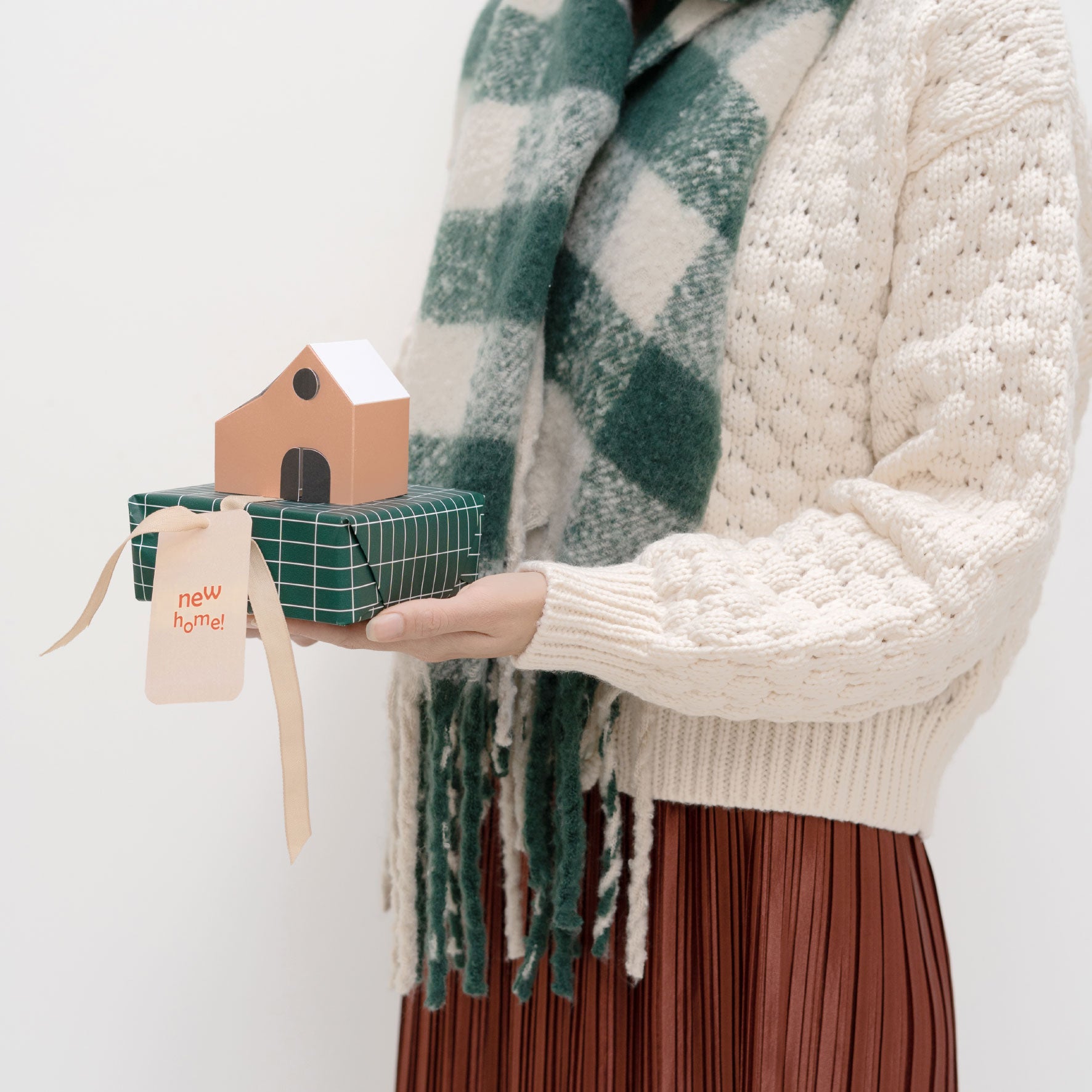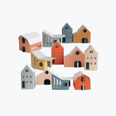 Build your own village with the Jurianne Matter tiny house ornaments. Samlet is a collection of 12 paper houses with a mix of traditional, rural, contemporary urban and modern designs in muted, earthy colours. The interior walls are adorned in a trendy black & white wallpaper print.