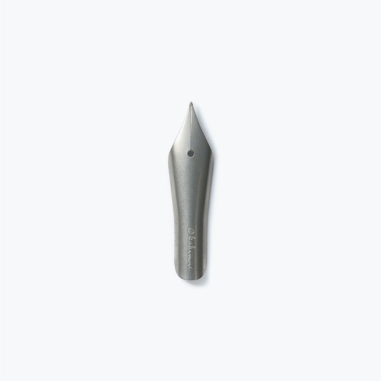 Focusing on the simplicity of the dip pen, Kakimori has designed a series of interchangeable calligraphy nibs and nib holders. Although appearing similar to a standard G nib, this metal nib offers the smooth writing comfort of a fountain pen. The secret lies in its iridium tip, which enhances the nib's durability and consistency.