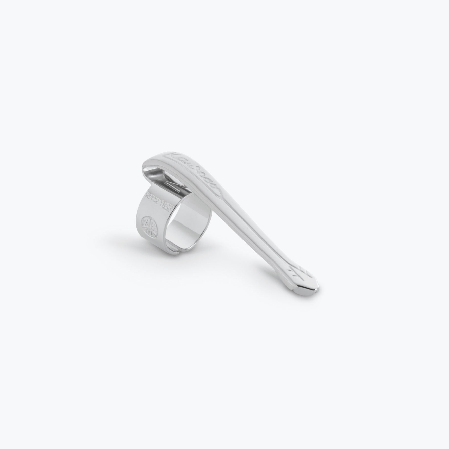 This Kaweco clip slides onto the capped Liliput fountain pen or ballpoint pen, transforming your writing instrument into an everyday companion. With a shiny silver finish, vintage shape, and embossed pint, the clip has a nostalgic feel.