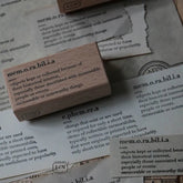 This charming rubber stamp by Lin Chia Ning features an engraving of the definition of "memorabilia" bringing nostalgic touch to your creative projects. Its finely detailed design makes it ideal for those who appreciate vintage style and meaningful details, adding depth and character to journaling, scrapbooking, letter writing, and mixed media art. Whether used as a focal point or as a subtle background element, this stamp is a versatile tool that enhances any collection with timeless charm.