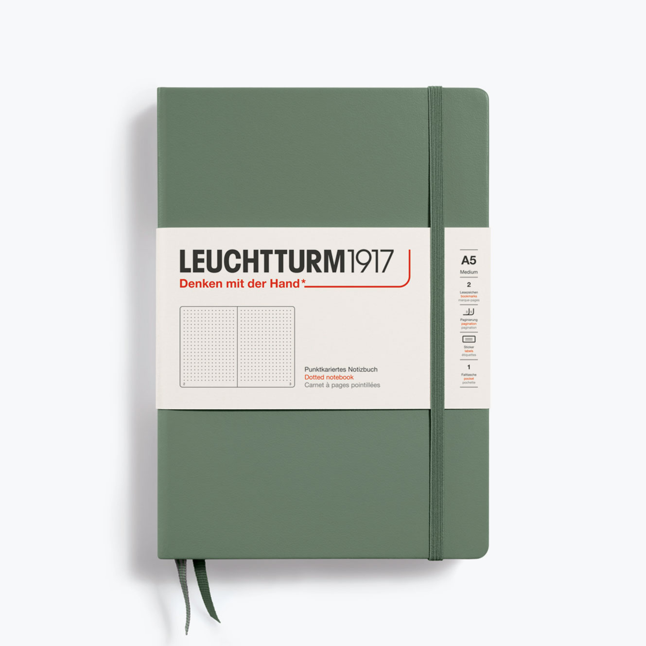 The Olive Leuchtturm1917 A5 is a simple yet sophisticated notebook, making it an ideal companion for all walks of life. Leuchtturm1917 notebooks are designed very carefully down to the last detail. The pages are numbered and each page has space at the top for the date, while a blank table of content makes it easy to organise notes. There are several perforated pages and a gusseted pocket at the back of the notebook, as well as a set of self-adhesive stickers for labelling and archiving.