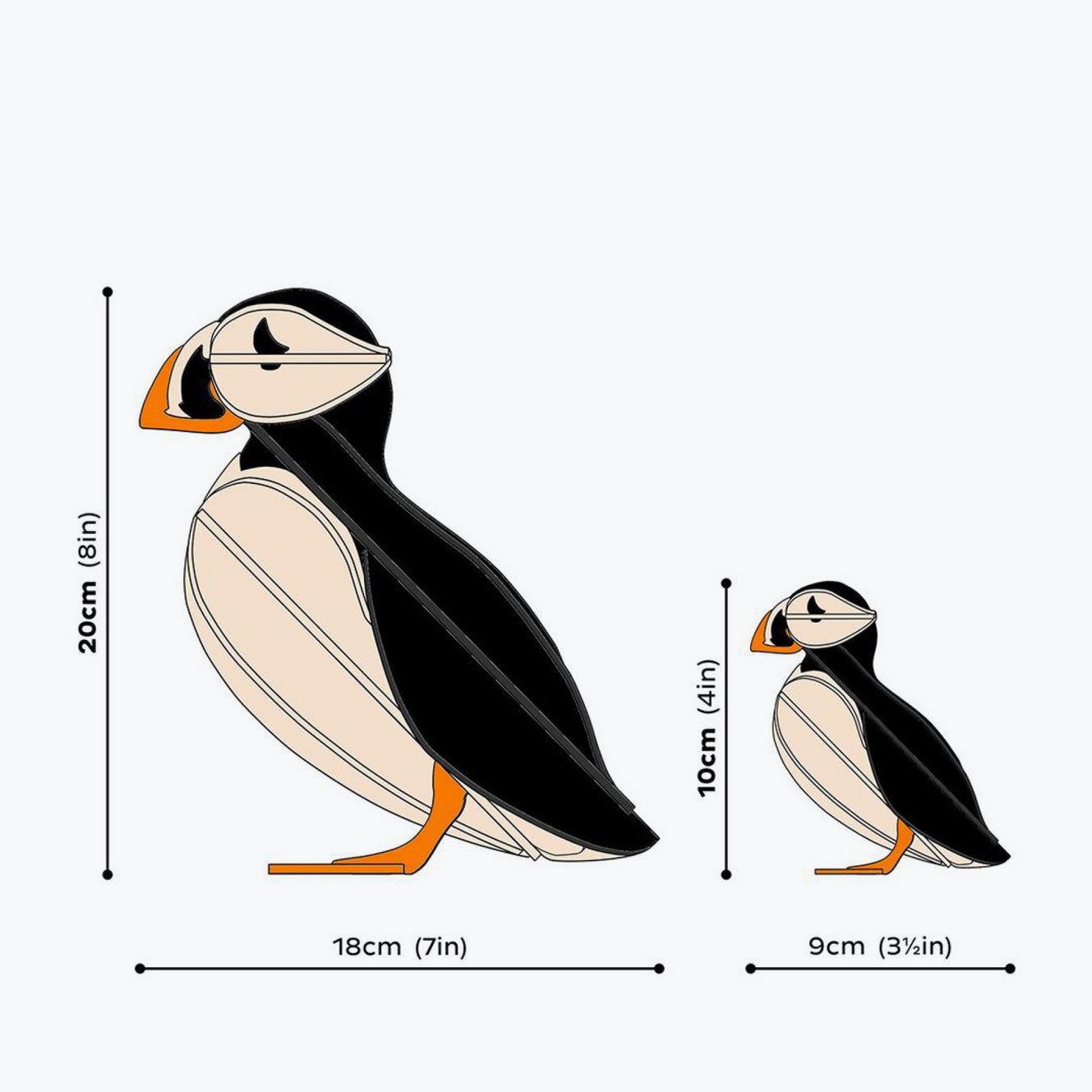 The smaller puffin is perfect as a gift or shelf decoration, and the larger version becomes an impressive centerpiece or a thoughtful gift for bird enthusiasts.