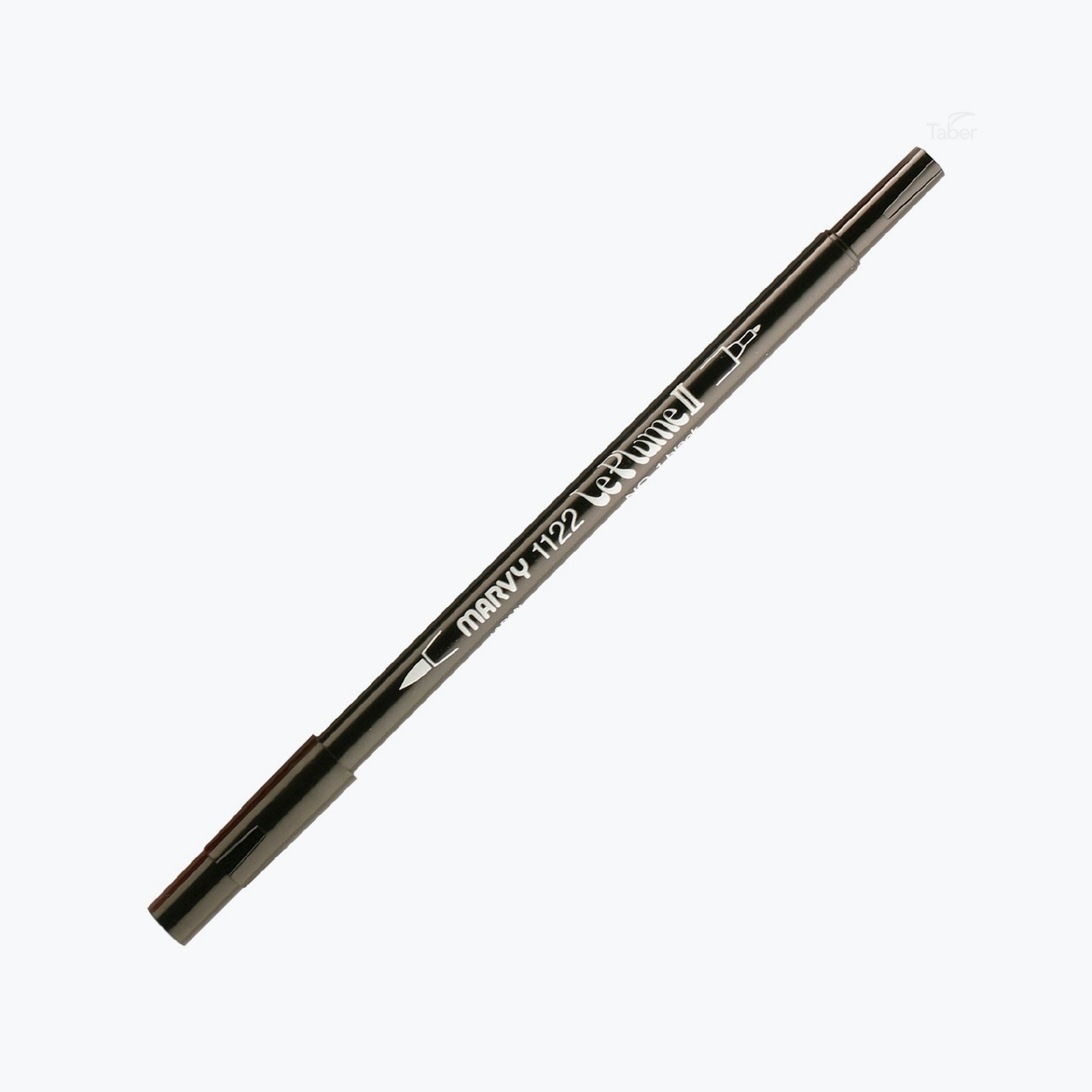 The Black #1 Marvy Uchida Le Plume II is a dual end, water-based marker with a smooth brush on one end and an extra fine tip on the other. The ink is acid-free and non-toxic. The ink is also water based and blendable, making it ideal for a variety of uses including writing, journalling, rubber stamping, card making and drawing.