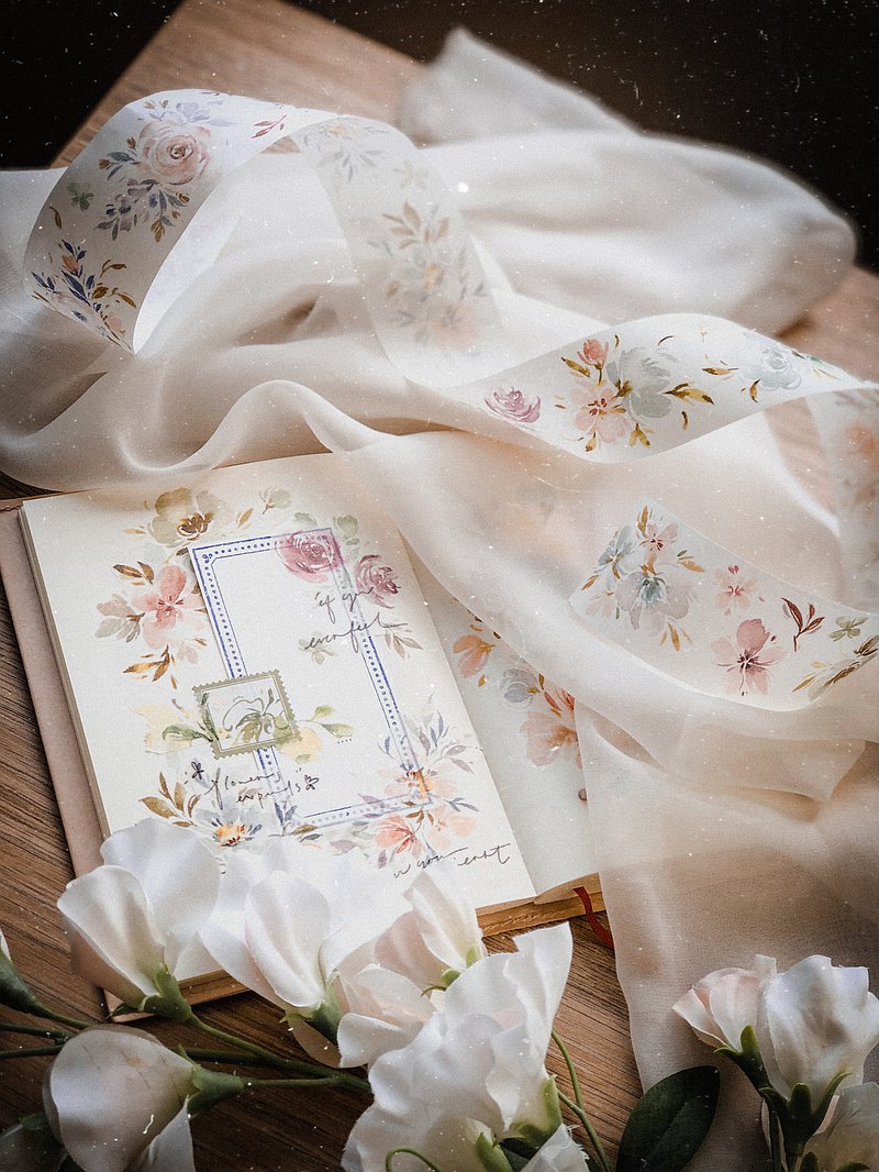A soft flow of blooms in coral, dusty rose, and chestnut tones - this washi feels like sunlight filtering through late summer petals, warm and rich.