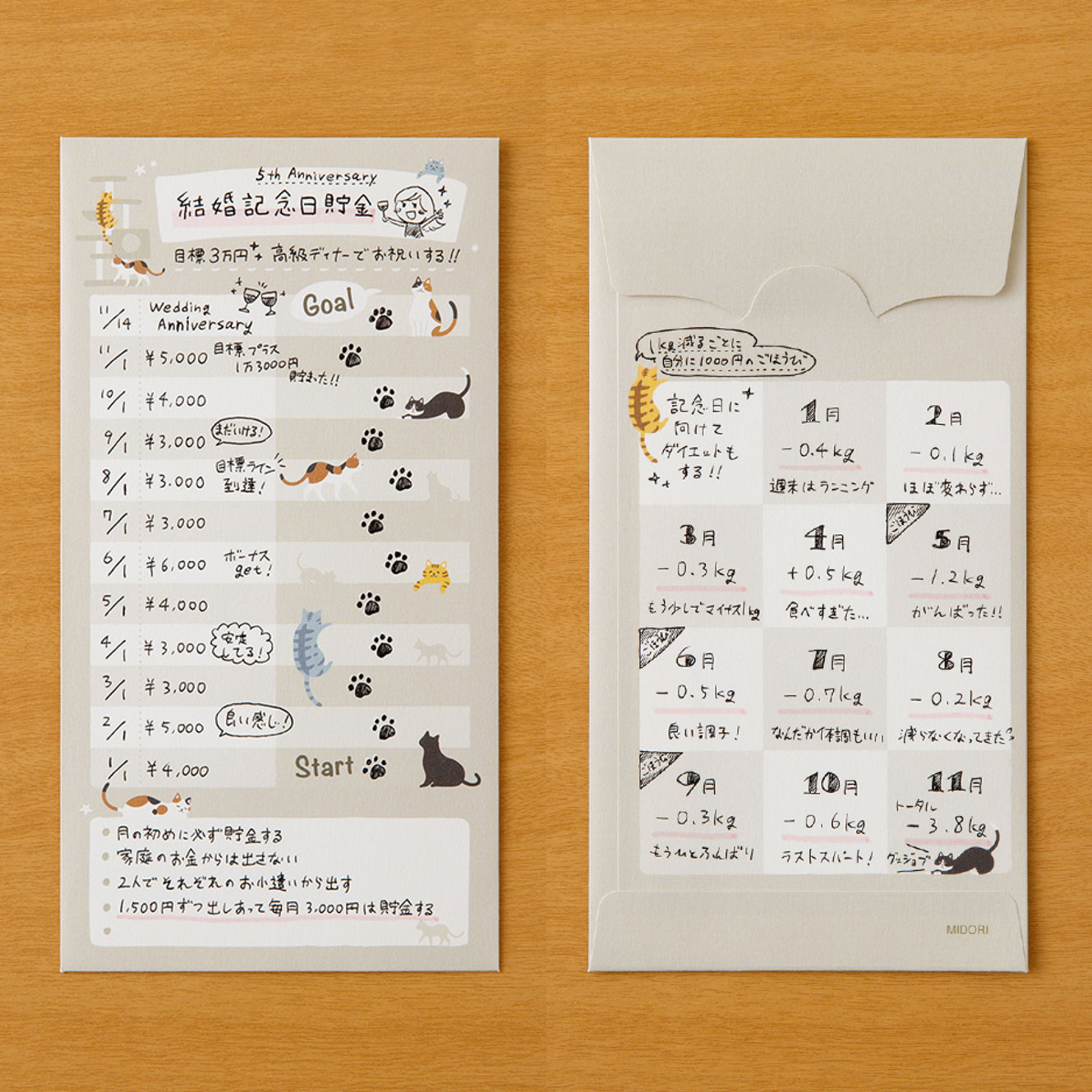 This cute, Japanese-made savings envelope is printed with playful cats and is meant to help you set and meet a money-saving goal!