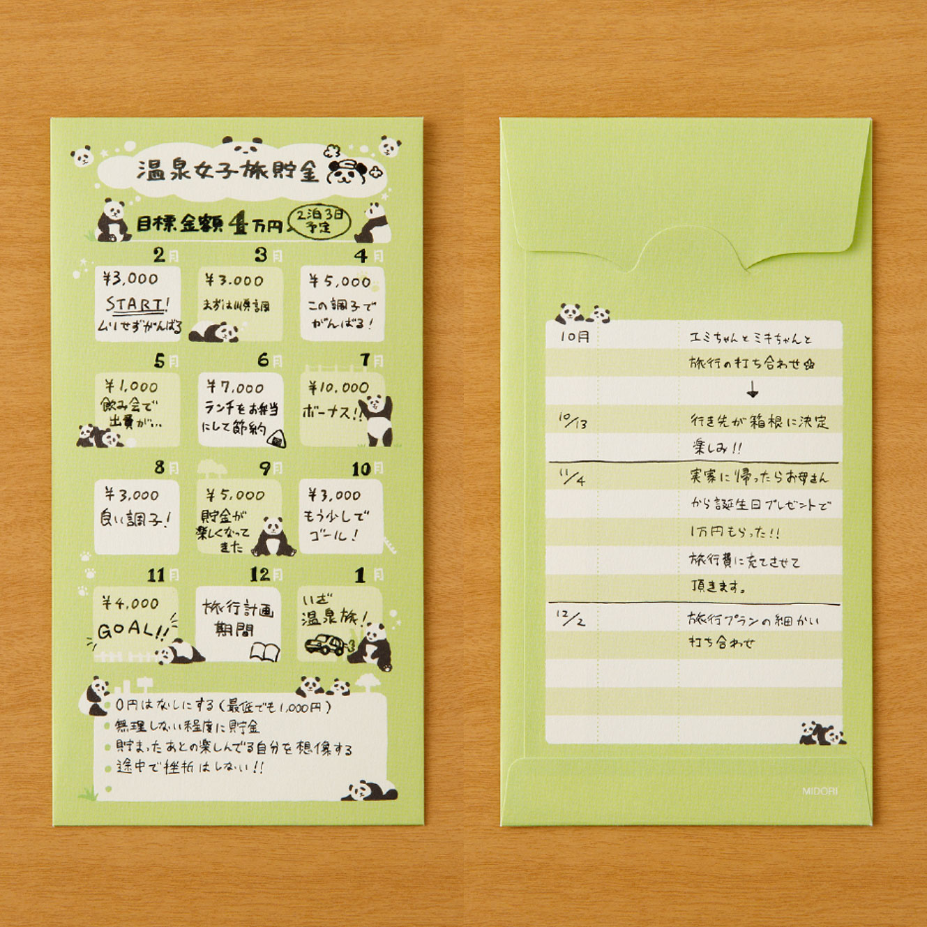 This Midori savings envelope is printed with cute pandas and features and is your best friend when it comes to setting and meeting money-saving goals.