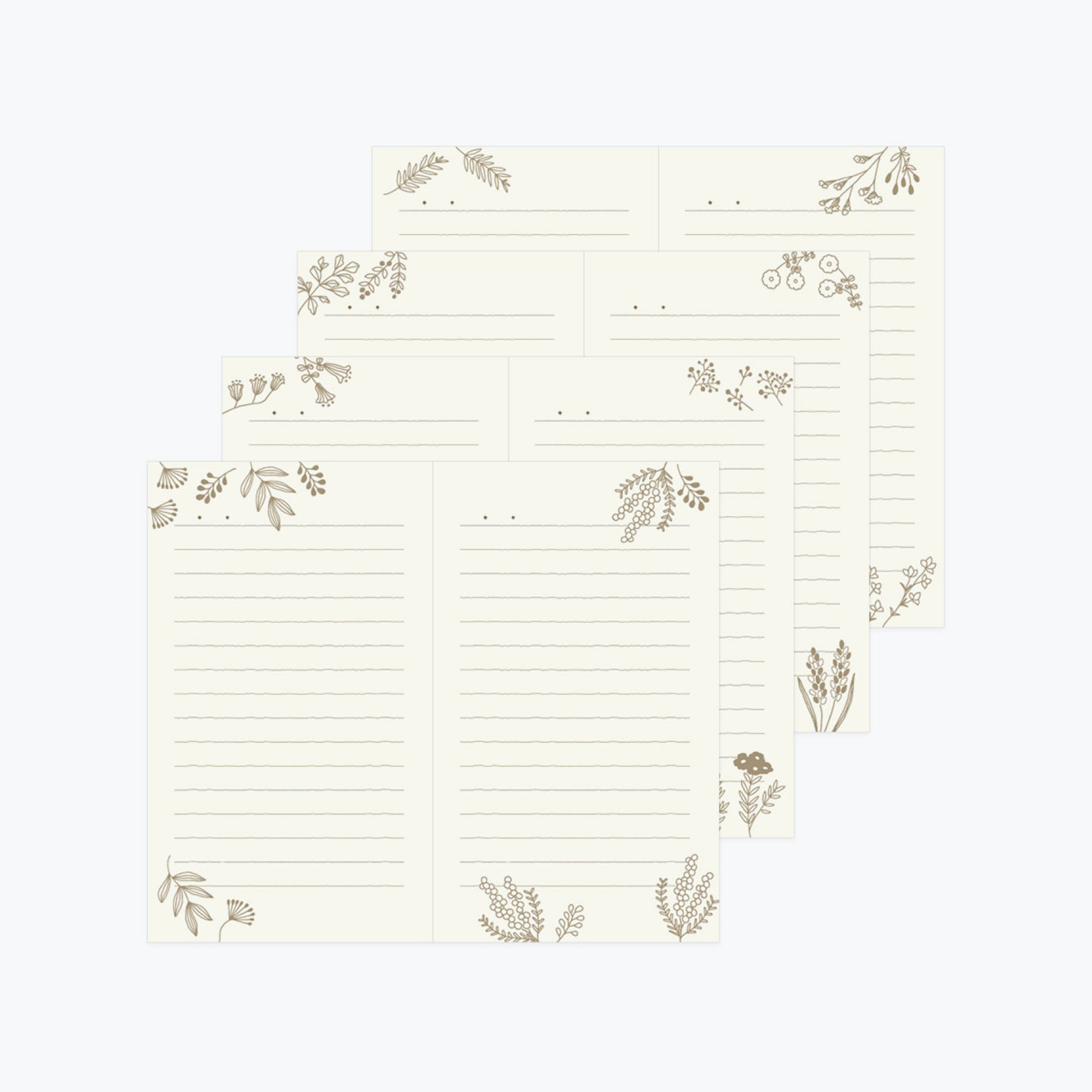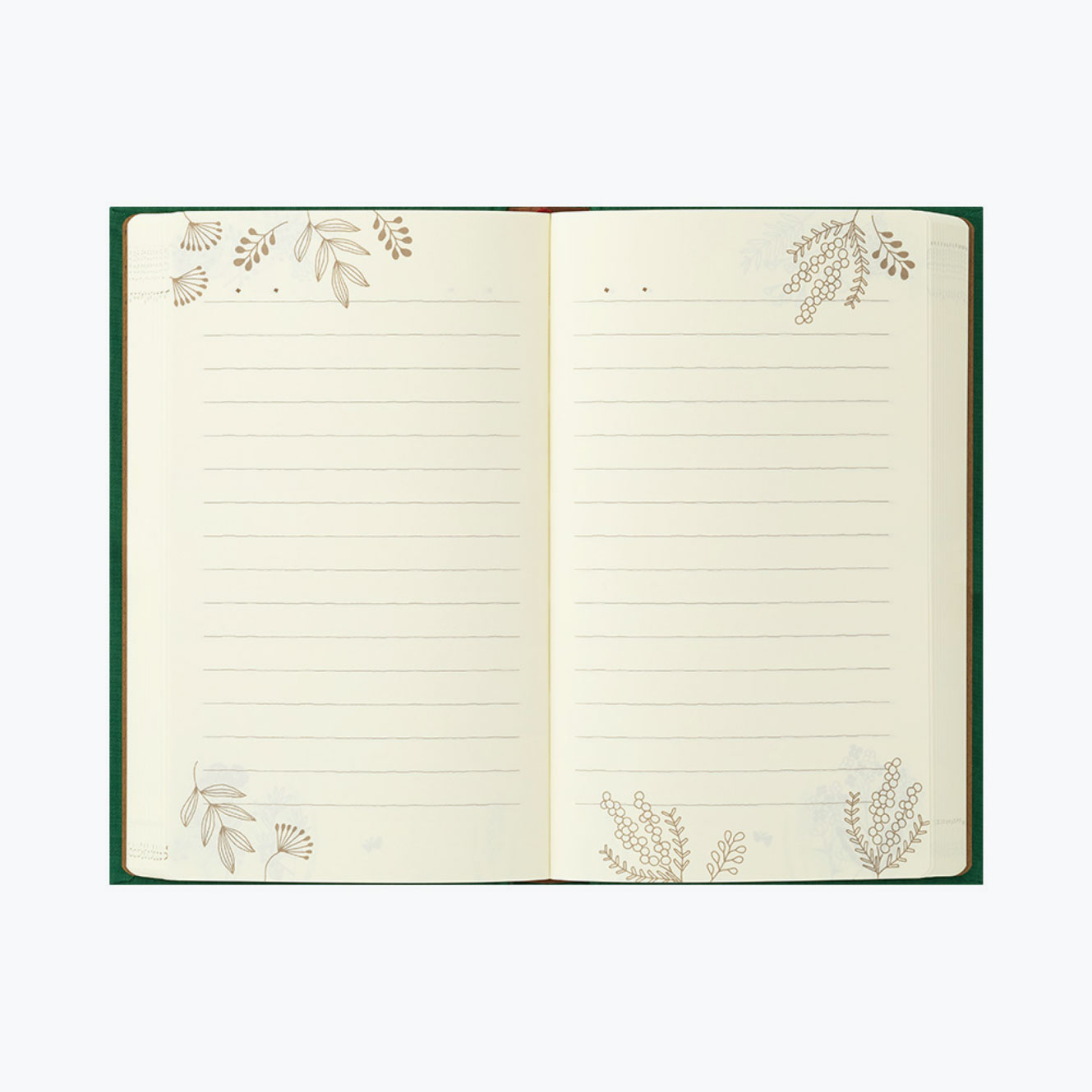 A beautifully embossed hardcover Midori journal in a botanical design with foil detailing. This undated MD Notebook contains 368 pages of high‑quality, fountain‑pen‑friendly MD paper.