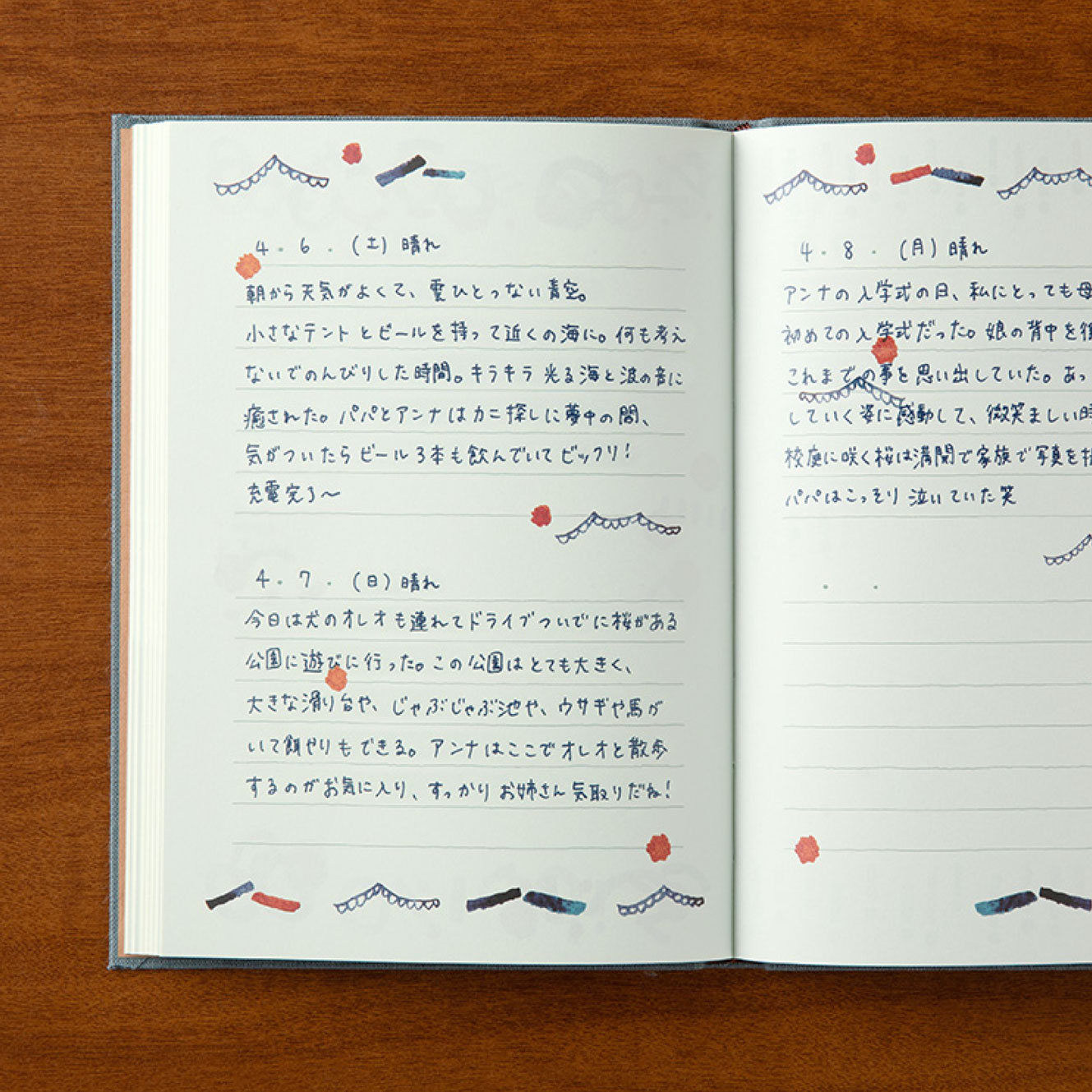 This Midori slim softcover diary is bound with minimalist grey fabric cover with a simple front design. Being flexible, it's ideal for daily use on the go. Inside, you will find 192 pages of premium fountain-pen friendly MD Paper with different margin designs - each page has enough space for two short daily entries.