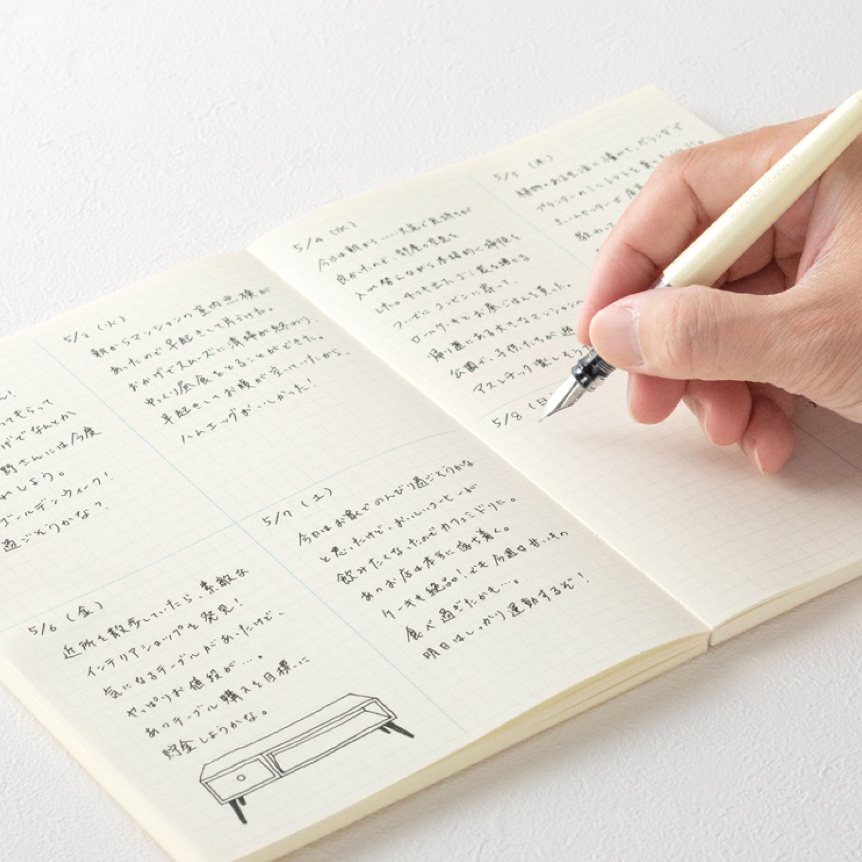 The Midori Notebook comes with 176 pages of MD Paper, which is smooth and resistant to feathering and show through, making it ideal for all writing instruments including fountain pens. The grid block notebook uses bold lines to divide each page into four segments, eight segments across two pages.