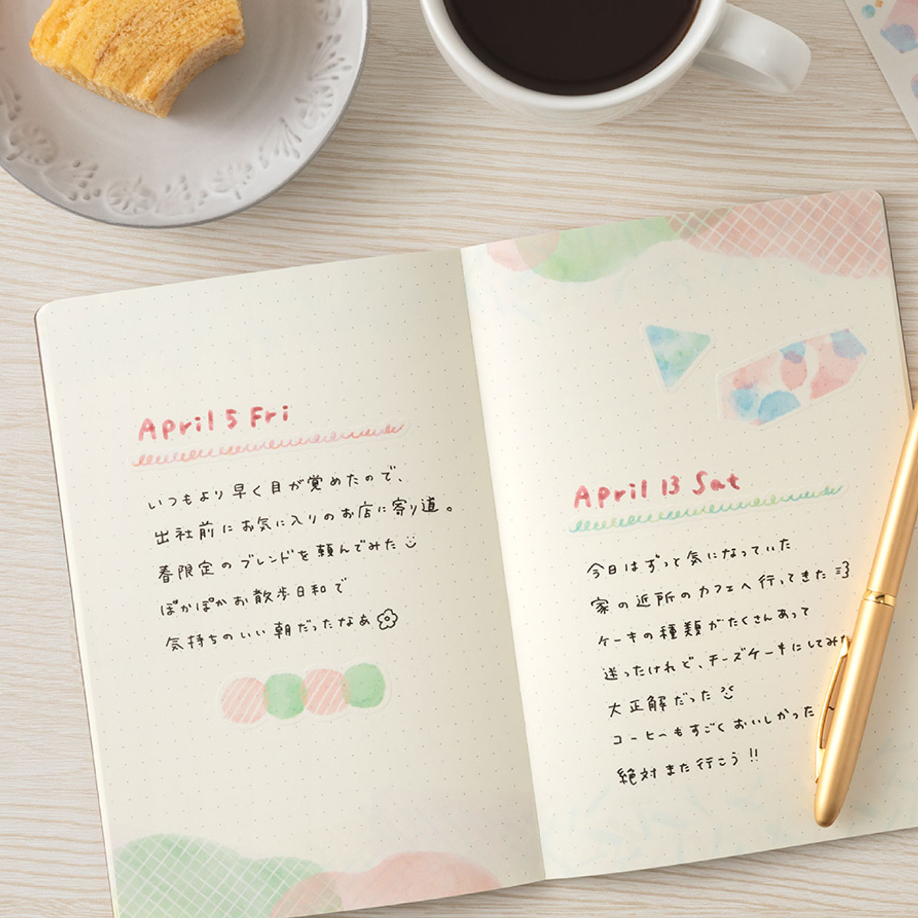 Midori Yuru Log B6 Watercolour has soft, watercolour-inspired illustrations adding artistic flair throughout the notebook. The smooth MD Cream Paper and quality binding provide a pleasant writing and drawing experience. Its convenient B6 size fits daily use.