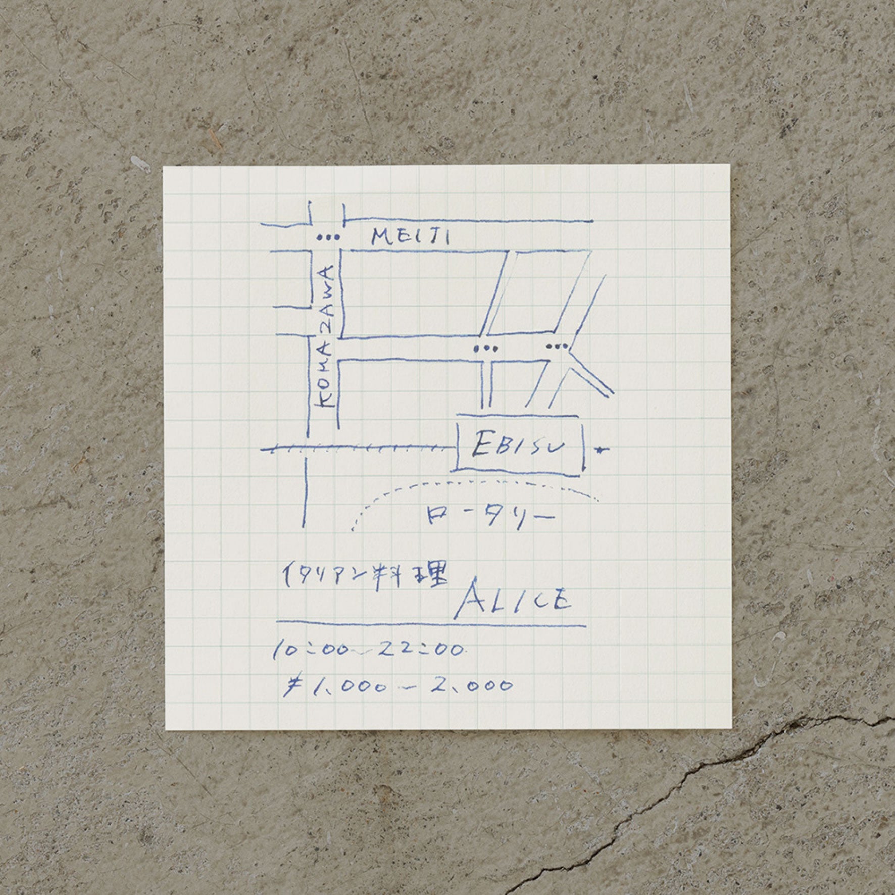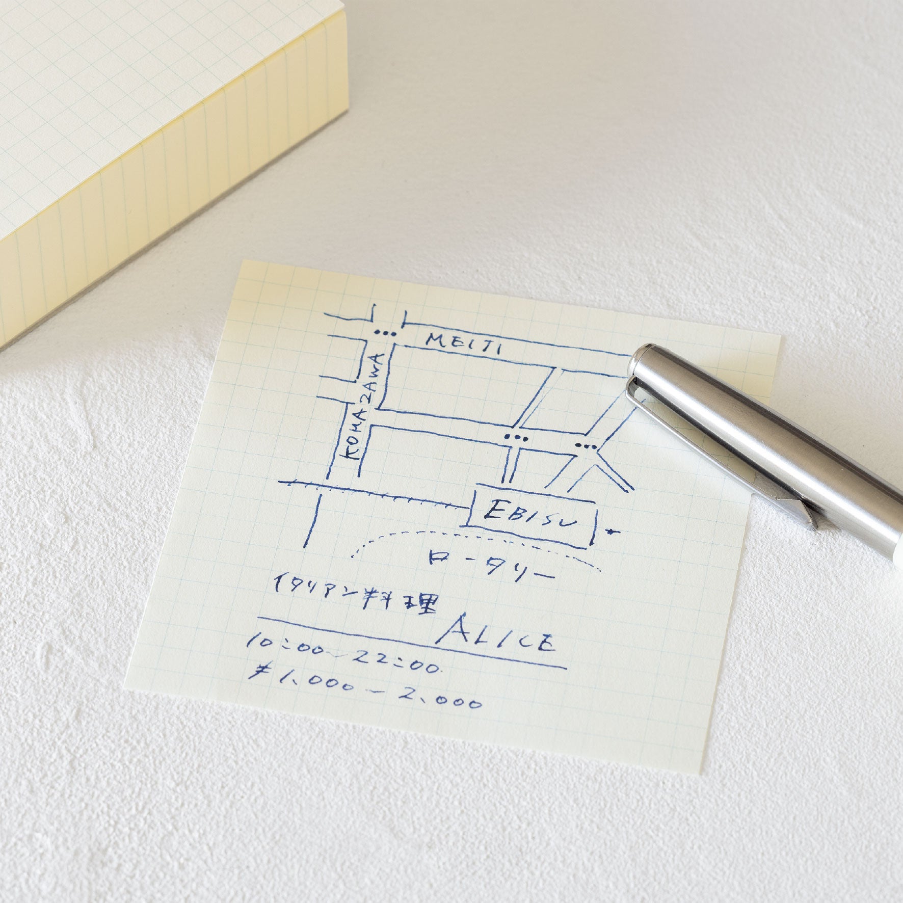 Block-style memo pad with a light 5mm grid. Great for graphs, neat notes, and layout planning. Smooth paper for pen or pencil. Easy-tear sheets.