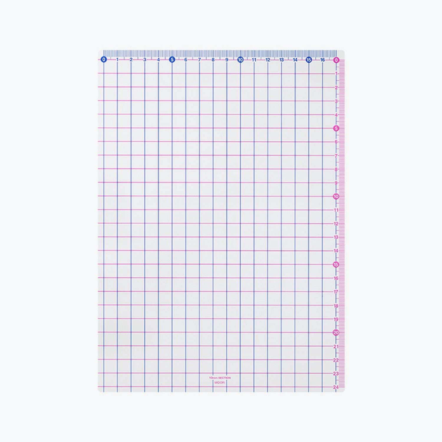 This B5 Midori underlay is printed with a 10 mm square grid, ideal for sketching layouts, drafting diagrams, or aligning text. With the rigid backing, it offers clean support beneath paper to improve smoother pen strokes.