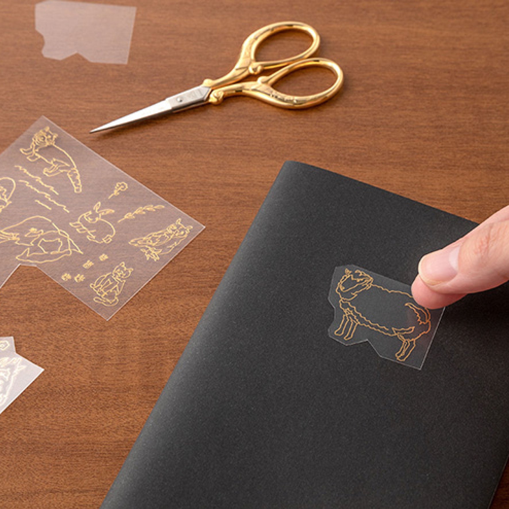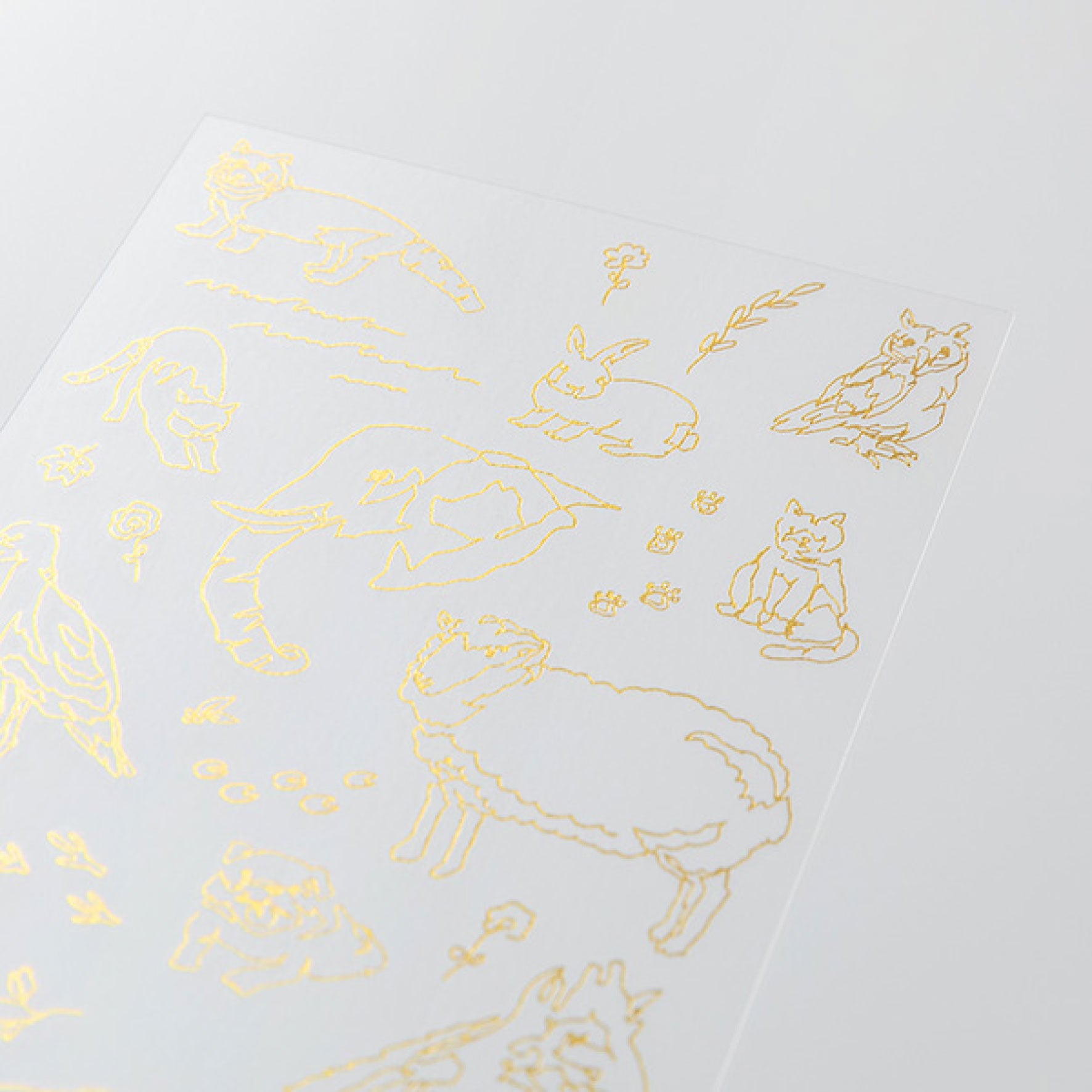 Bring your notebook, journal or even envelopes to life with the Midori foil transfer stickers featuring an animal motif. The foil transfers can be used on paper or the cover of a notebook, with the gold adding a touch of sparkle to a lighter background or striking contrast to a dark background. The sticker itself is very thin and uses foil, creating a natural finish that looks like it was embossed onto the surface.