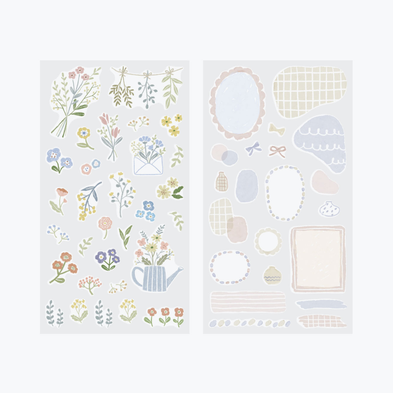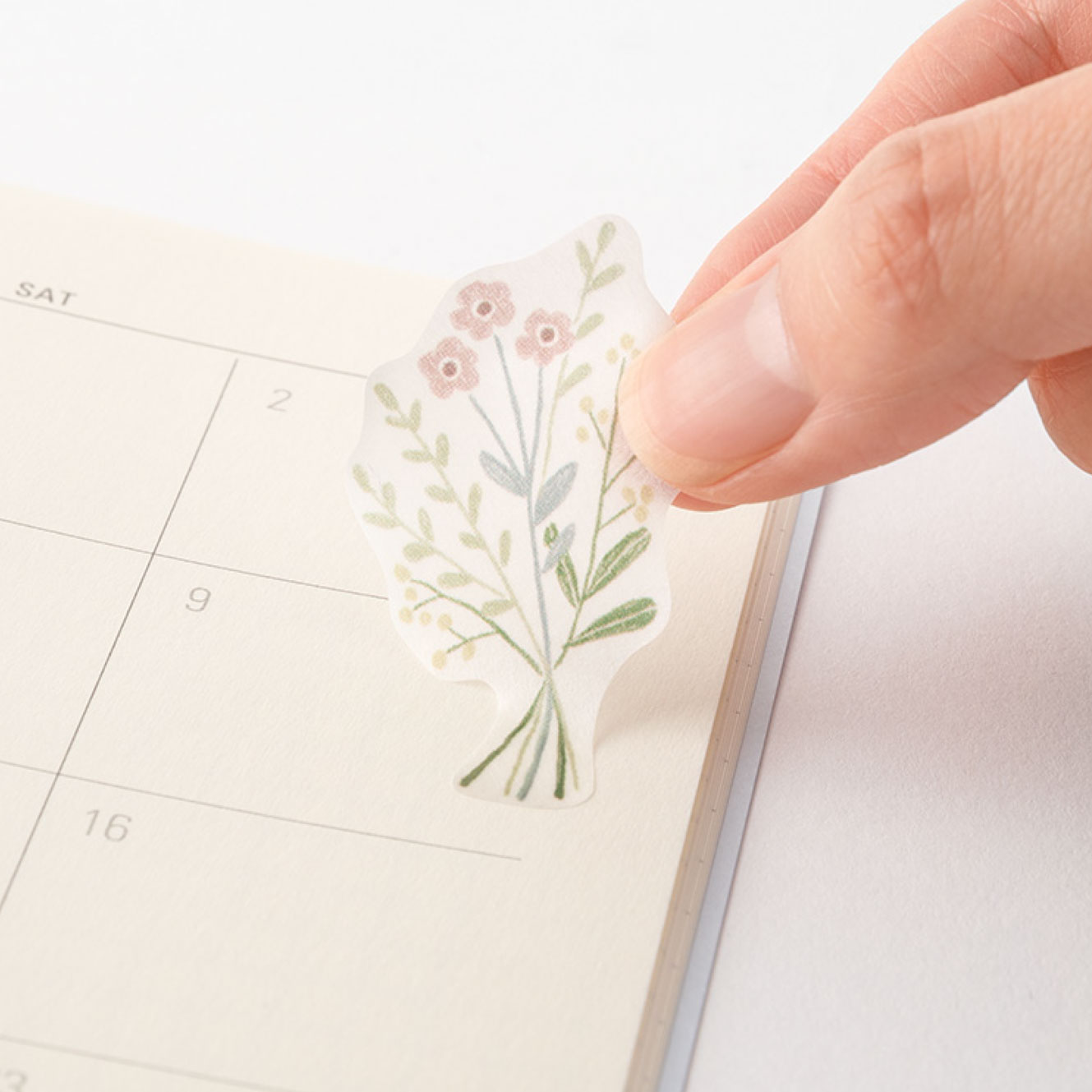 The Midori Sticker Collection sheets are slim, PET‑film sticker sheets made in Japan. They’re peel‑and‑stick, repositionable, and ideal for planner margins, headers, calendar blocks, and journaling spreads. Each sheet is decorated with themed motifs in soft, minimalist style by Japanese illustrators.