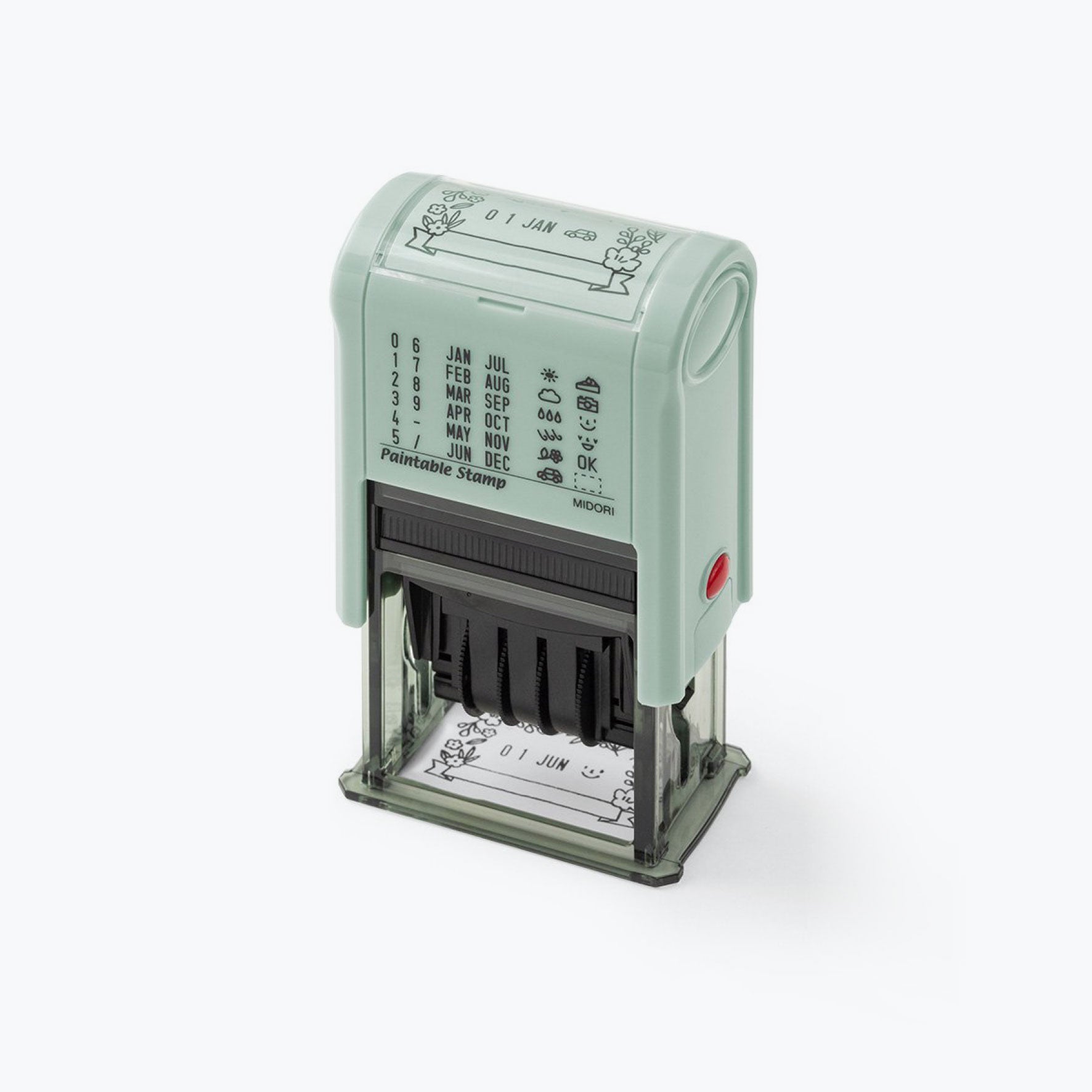 The Midori rotating date stamp is perfect for keeping your journal on track, birthday cards or even for expiry date labels. This design features flowers as the border, which can be coloured in using the paintable brush pens as the oil-based, black ink is waterproof.