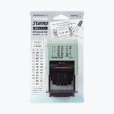 To use, simply adjust the date by turning the dial and press onto the page. The stamp makes approximately 2,000 impressions before requiring the ink to be topped up using the Midori ink refill. The Midori self inking stamps can be used for journalling, decorating or with the sticky notes or stamp series notebook.