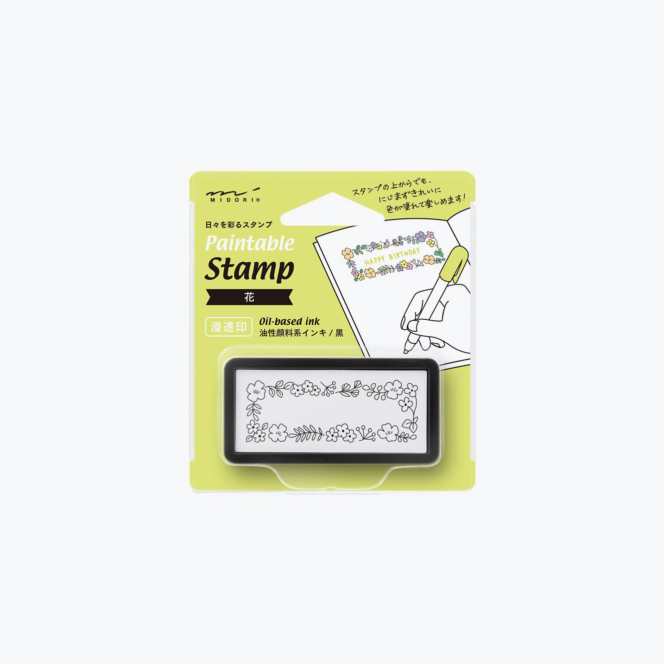 The Midori mini self-inking stamp is perfect for decorating, organising and keeping track. The Floral design has space to fill in a date, heading or notes and can be coloured in using the Midori paintable brush pens as the oil-based, black ink is waterproof.