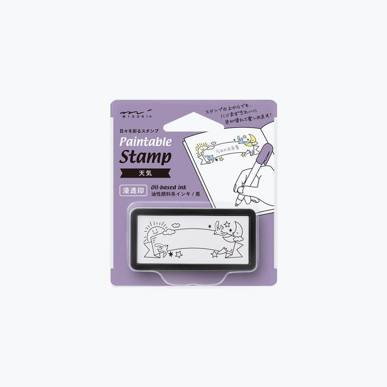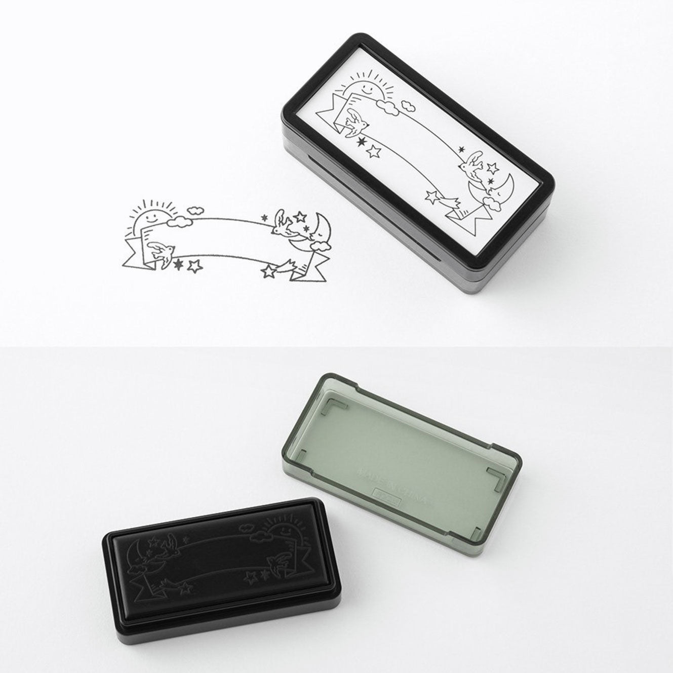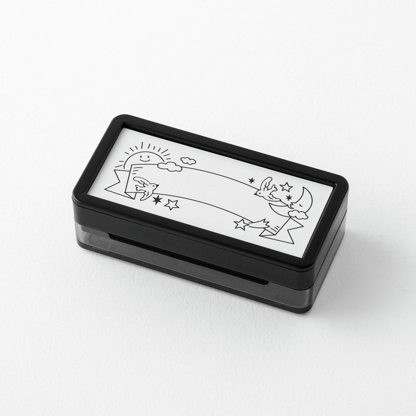 The Midori mini self-inking stamp is perfect for decorating, organising and keeping track. The Joy design has space to fill in a date, heading or notes and can be coloured in using the paintable brush pens as the oil-based, black ink is waterproof.