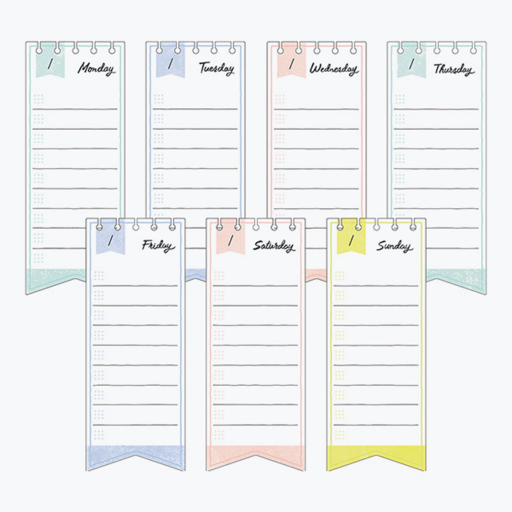 The Midori Weekly Log stickers are perfect for keeping your journal organised, while adding a touch of colour and style. Each sticker features 9 lines to write a daily to do list, with 9 dots on the left hand side of each line that can be used to make your own signifiers. There is also space at the top to add in the date.