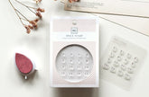 The stamps are made from clear silicone with self-adhesive on the back, making it easy to arrange the designs exactly as desired. To use, simply peel off the stamp, place onto the acrylic block, dab the ink pad and stamp. To change ink colours, the stamp can be cleaned with a stamp cleaner.