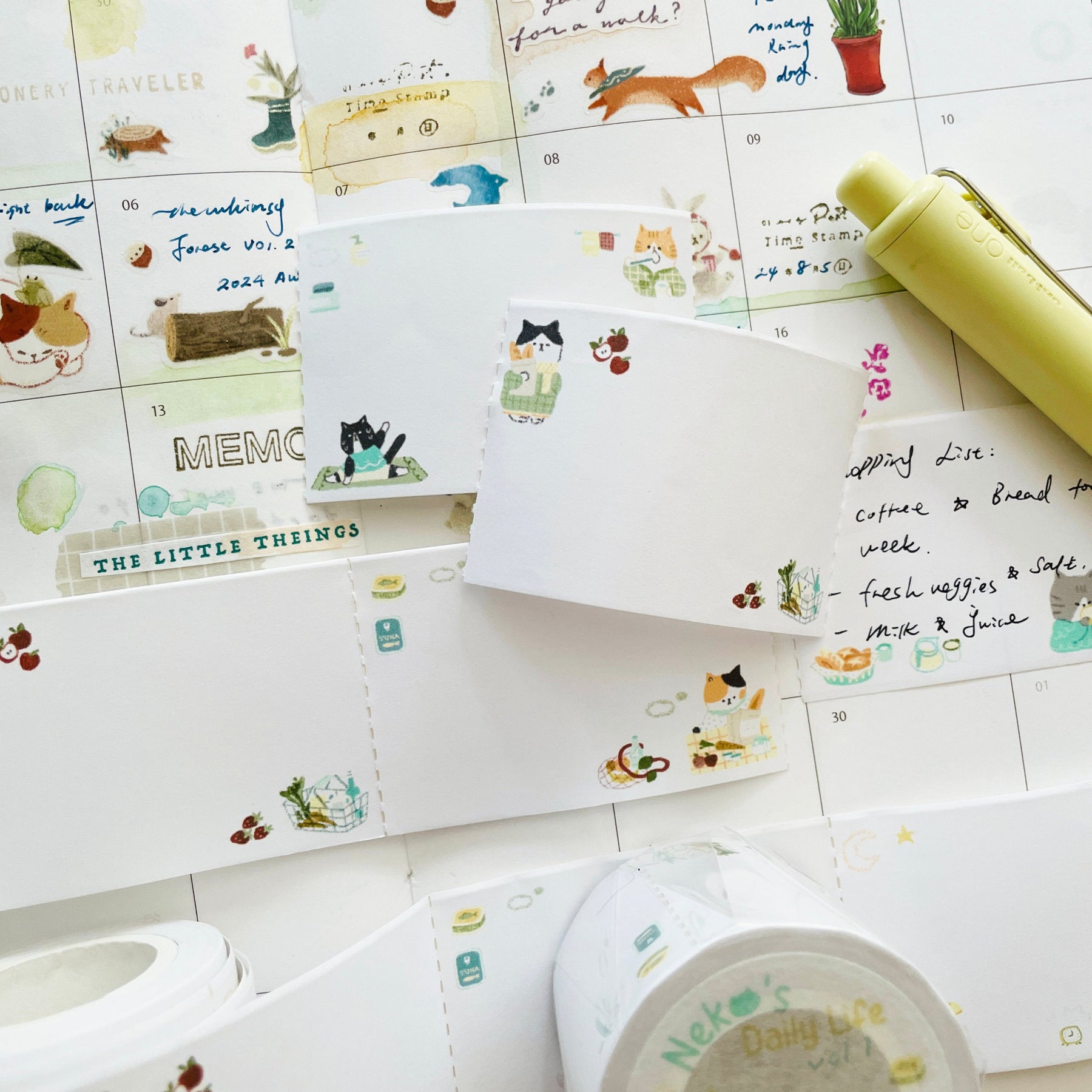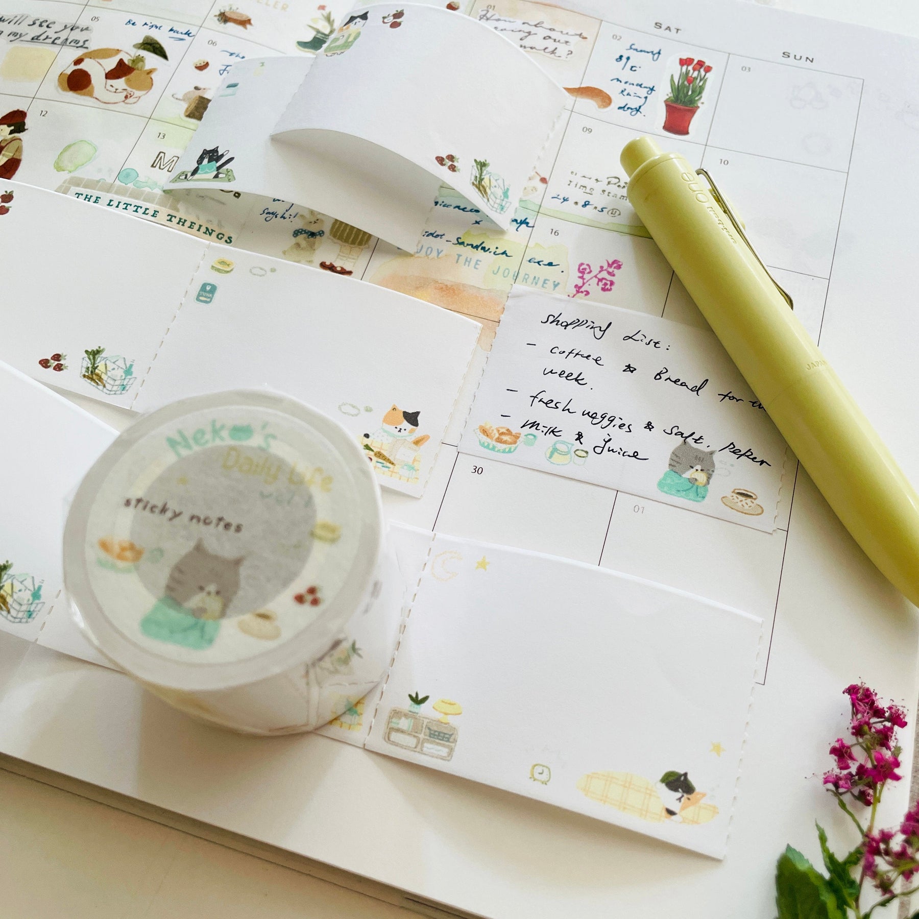 The Neko's Daily Life Vol.1 perforated sticky notes features five designs with full-surface adhesive.