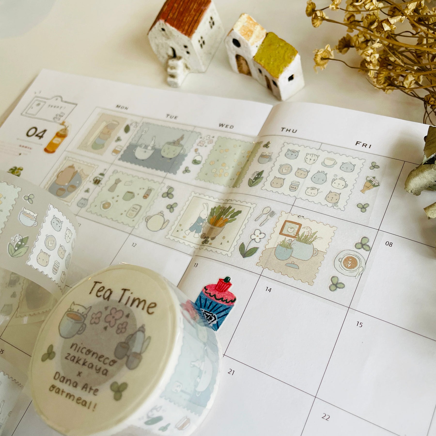 The Teatime PET tape is designed by Dana Ate Oatmeal, an immensely talented illustrator. Her journey in art began with crafting postcards for distant friends and family. Growing up with frequent relocations, Dana understands the joy that receiving snail mail from loved ones can bring. Her art, often featuring whimsical slice-of-life scenes and panel art, is a reflection of this sentiment. Dana’s work is a heartwarming blend of reality and fantasy.