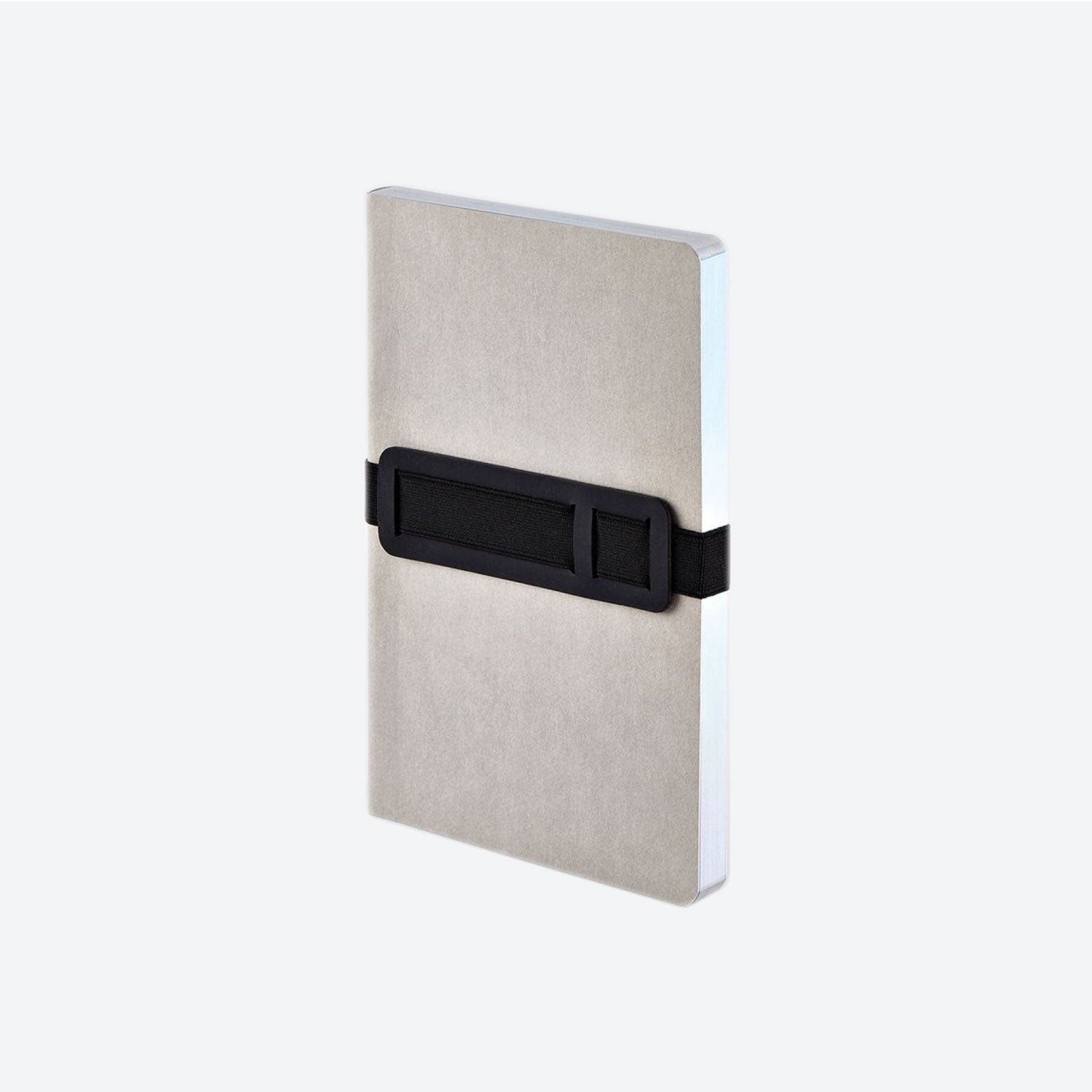 The Nuuna Voyager notebook contains 256 pages of 3.5mm grey dot grid, which offers guidance without interference, making it perfect for both writing or sketching. An elastic band is included to hold both a pen and phone to keep the notebook to keep the notebook closed securely. The simple black cover and holographic edging are applied via silk-screen printing, a technique made famous by Andy Warhol.