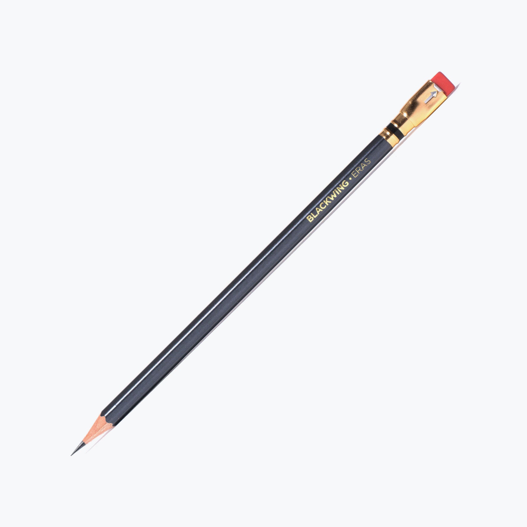 Blackwing Eras (2022 Edition) are a homage to the past and celebration of the future of Blackwing. Each pack includes 2 special edition pencils sporting a retro design inspired by the arrow-punched ferrule found on Blackwing pencils in the mid-20th century. Each pencil feature a dark grey barrel, gold arrow-punched ferrule, gold imprint, red eraser, and extra-firm graphite.