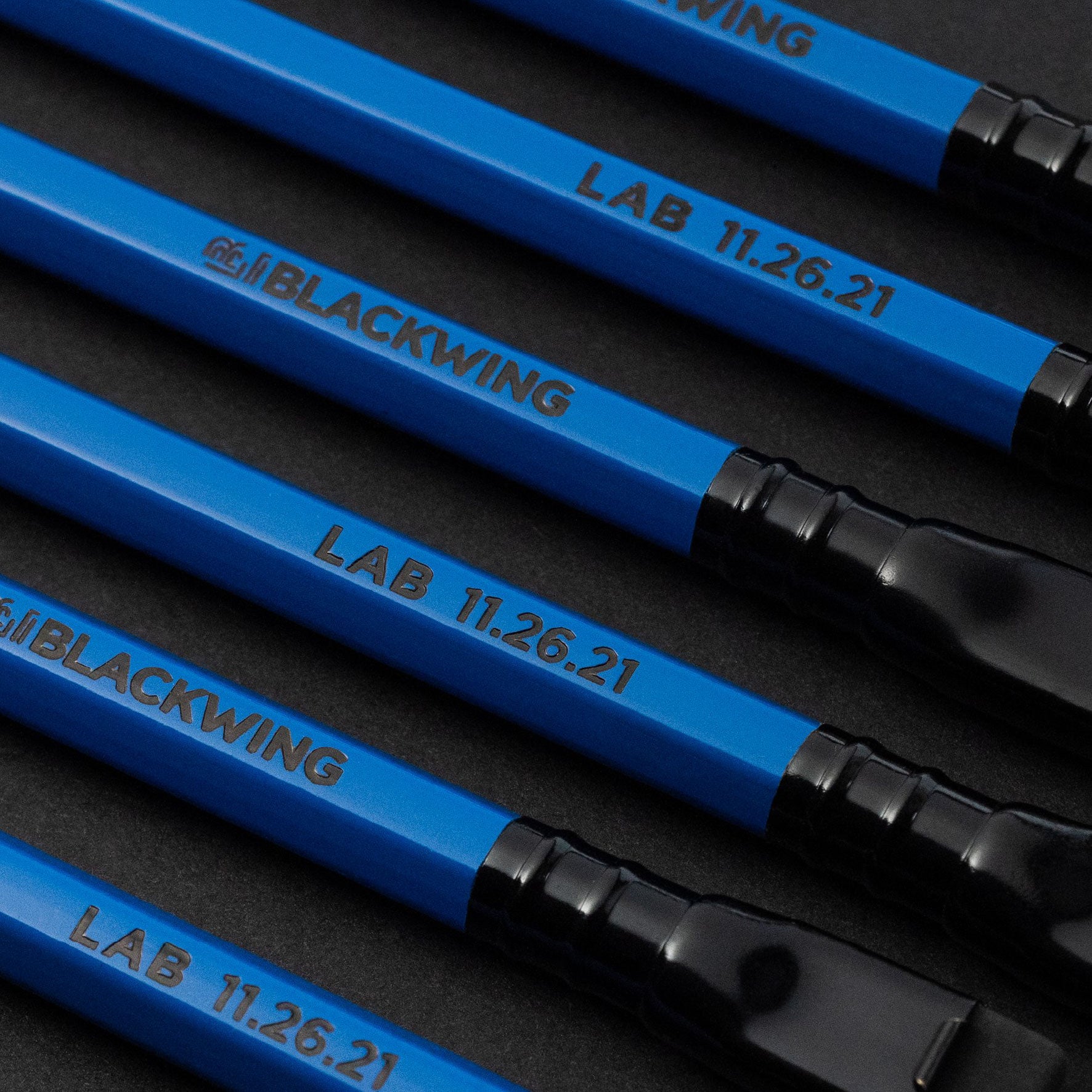 Lab 11.26.21 is the third instalment of the Labs series. With this Lab, Blackwing experimented with an extra-soft graphite core that is softer, darker, and smoother than anything they've done before. The design for this lab features a blue barrel, black ferrule, black clip, black eraser, and black imprint. Each set includes 12 pencils.