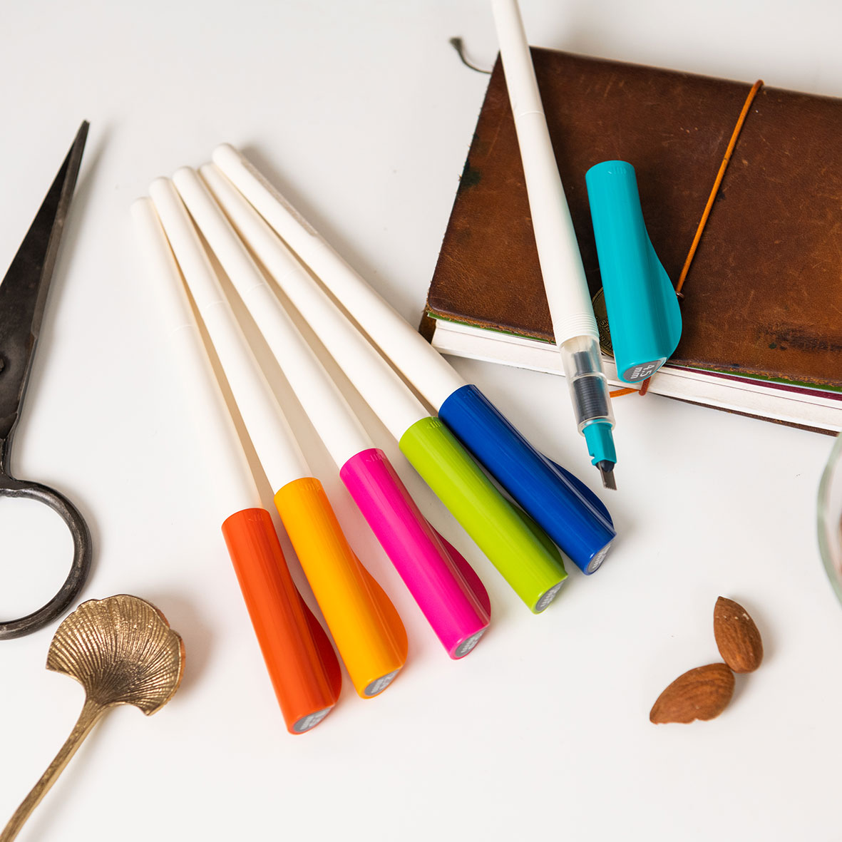 The unique, two-plate design allows the ink to flow evenly along the entire width of the nib so you can use both the flat edge for broad strokes and the corner for narrow lines. You can also use two Parallel Pens to blend between colours by touching the tips together for a few seconds. The ink will flow from one pen to the other, creating a gradient effect when writing.