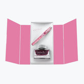 This Fountain Pen Set includes a Pelikan Classic M205 Fountain Pen (with silver trim) along with the matching bottle of the Edelstein 2023 Ink of the Year - Rose Quartz (Limited Edition).