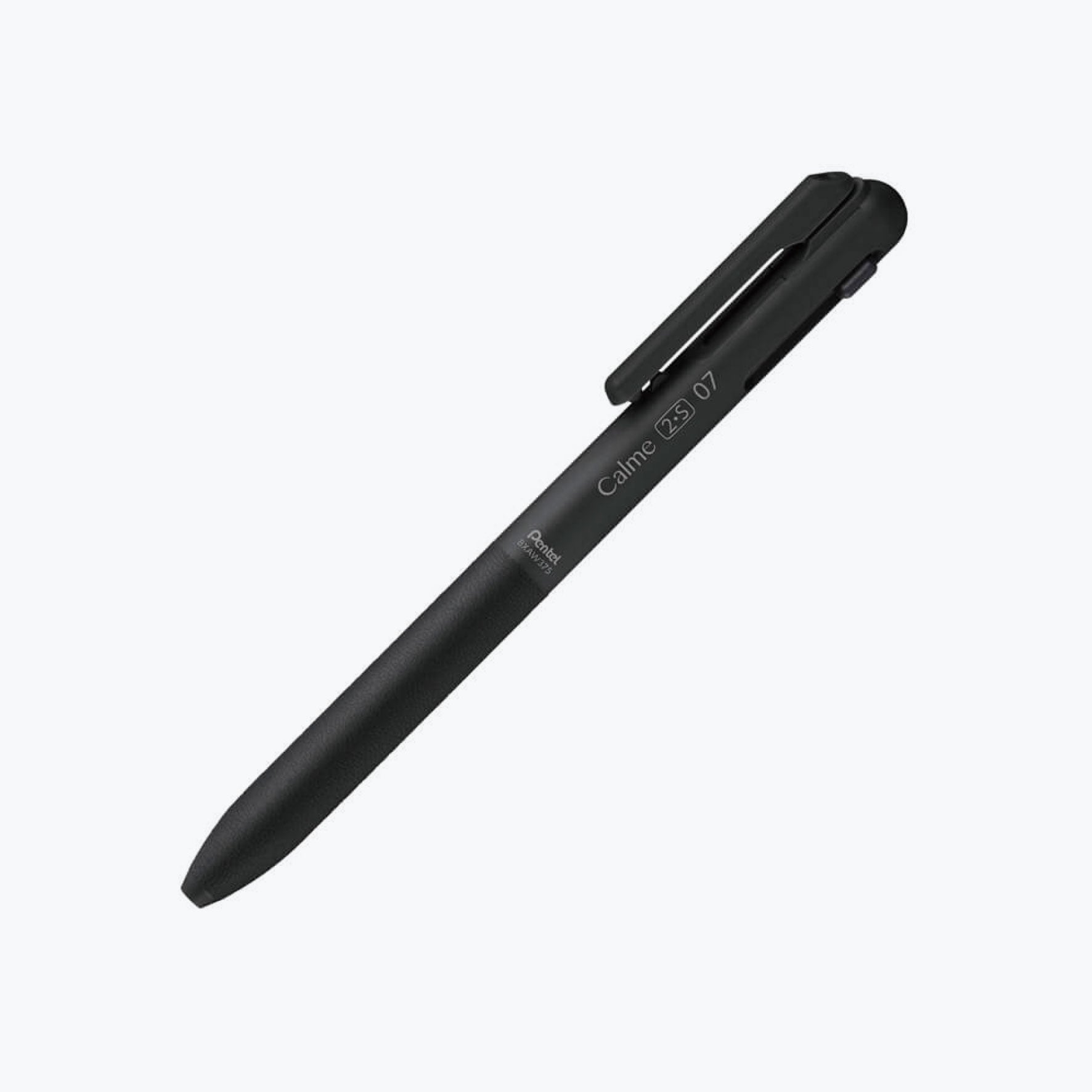 The Pentel Calme 2+1 Multi Pen combines two smooth oil-based ballpoint inks (black and red) with a precise 0.3 mm mechanical pencil in one compact tool. Designed with a quiet click mechanism that reduces knock noise by 66% (compared to most click pens) and a long, leather-like grip for comfort.