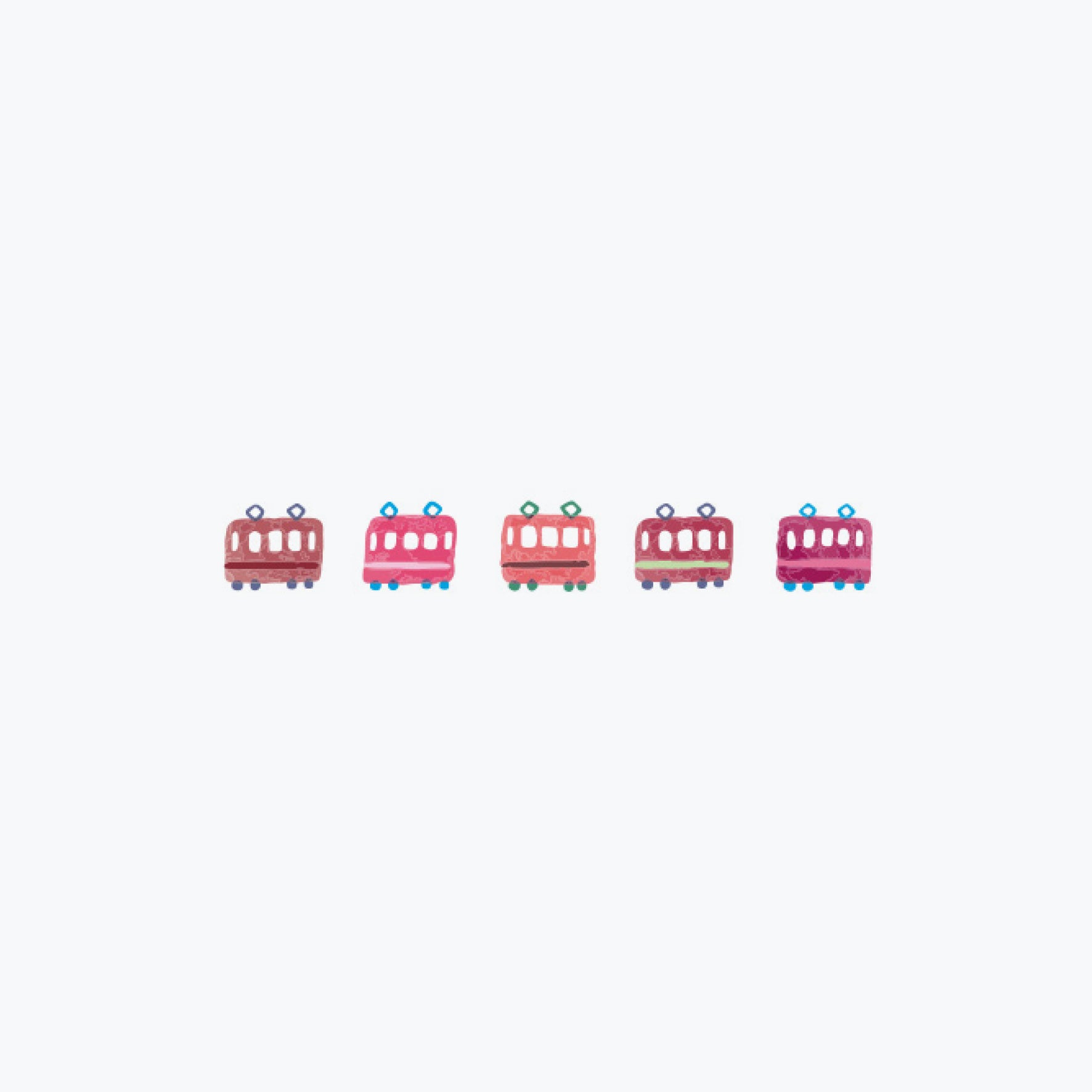 The Plus Deco Rush is a decorative washi tape thats adds a bit of fun to any notebook, planner or journal. The tram design features a series of pinks trams and can be layered with the other designs or even erased with the Deco Rush eraser.
