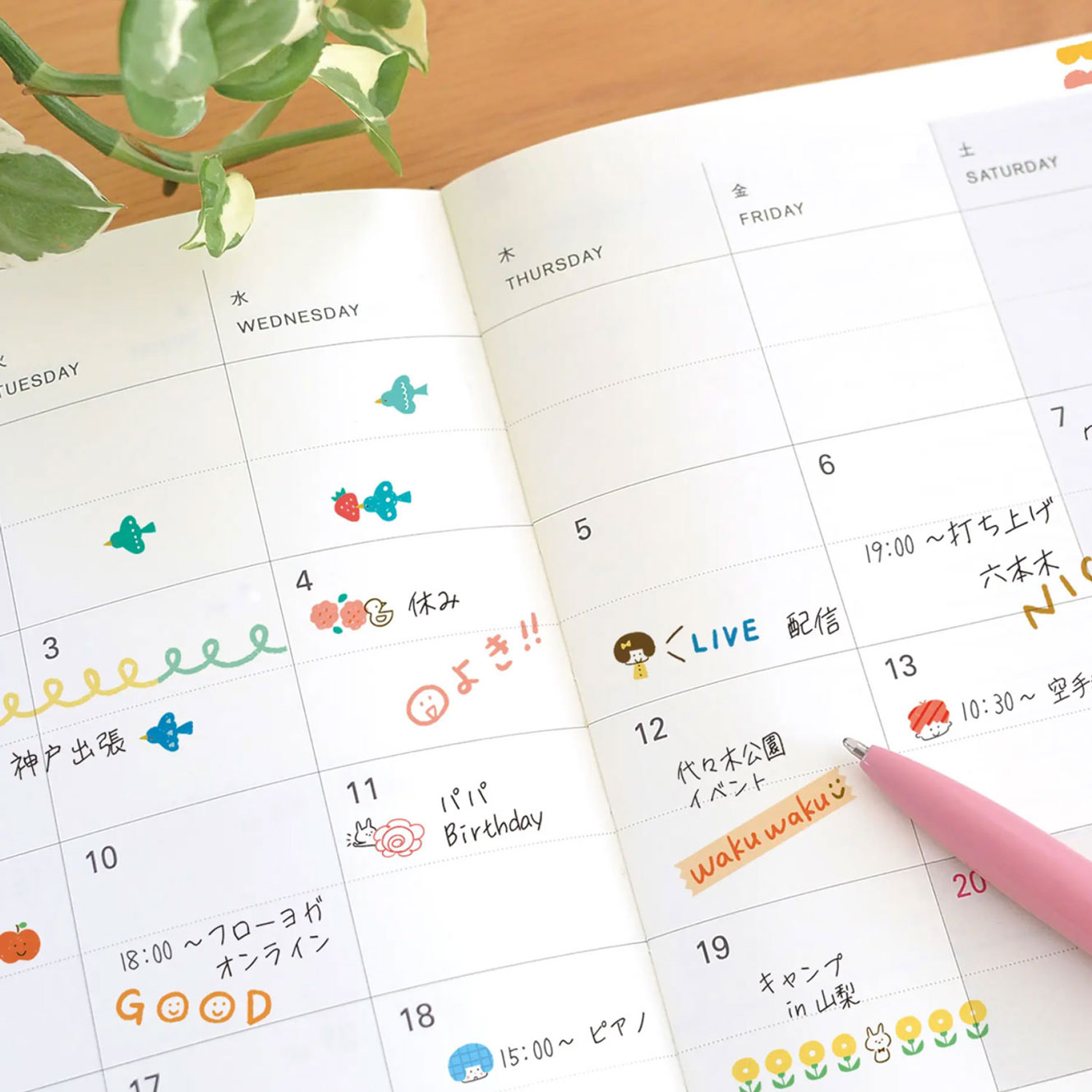These Plus Deco Rush decorative washi tapes are made in collaboration with mizutama, a Japanese illustrator and eraser-stamp artist. The Onomatopoeia design can be layered with the other designs or erased with the Deco Rush eraser.
