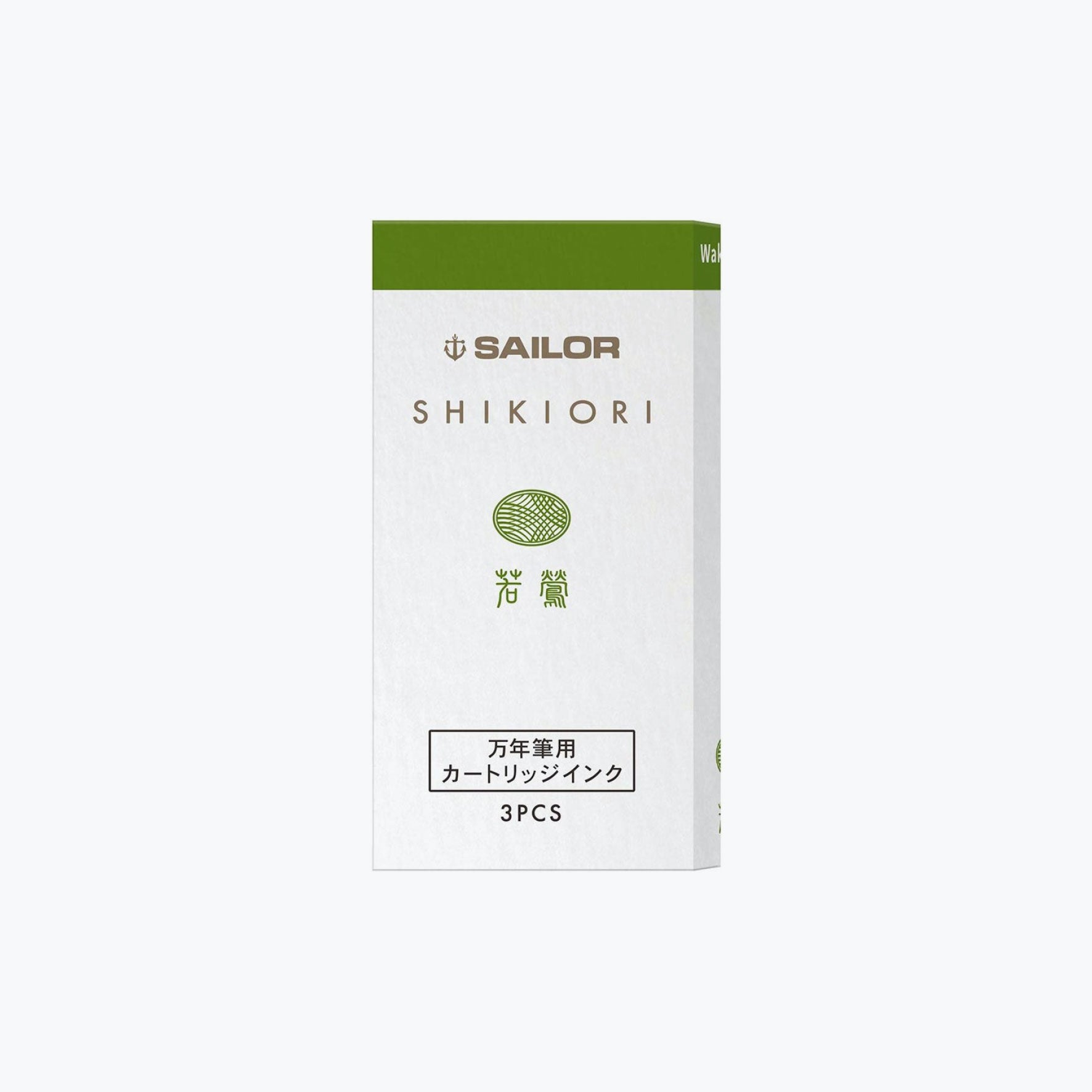 The Sailor Shikiori “Waka Uguisu” fountain pen ink cartridge is a medium spring green inspired by the Japanese nightingale.