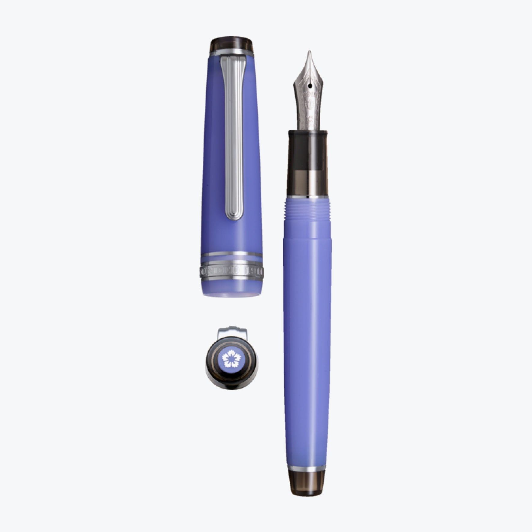 Featuring a 14k Gold Nib, rich colours and transparent resin finials that appear almost like jewels, the Manyo Dianthus ProGear Slim is the perfect companion to the soft purple-blues of Sailor’s Manyo Nadeshiko ink.