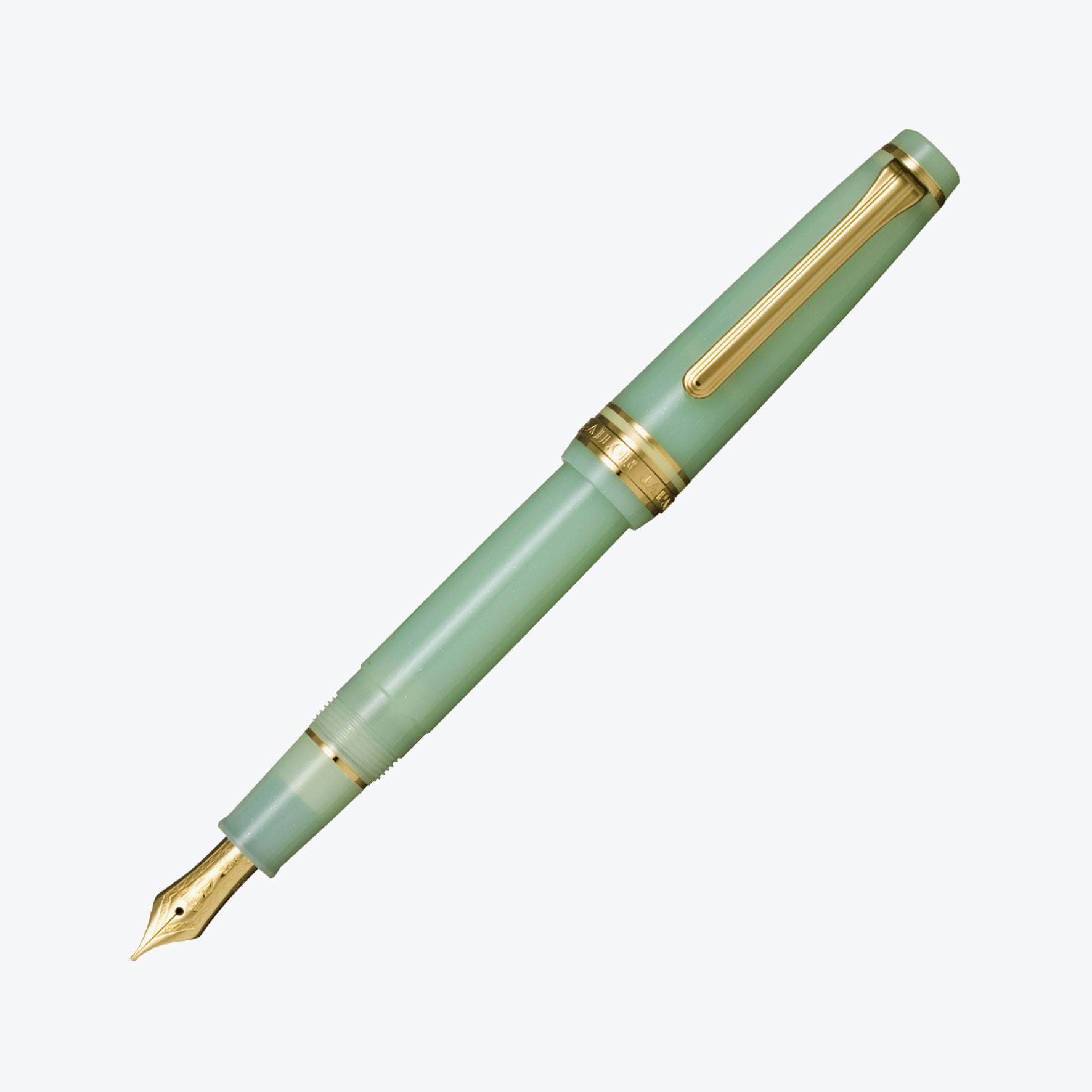Sailor Pro Gear Slim fountain pens use a cartridge-converter fill system so any bottled ink can be used when the pen is fitted with the provided converter, while Sailor proprietary ink cartridges will also work. The fountain pen comes in a special presentation box that includes the converter, a cartridge and a bottle of Shikiori ink.